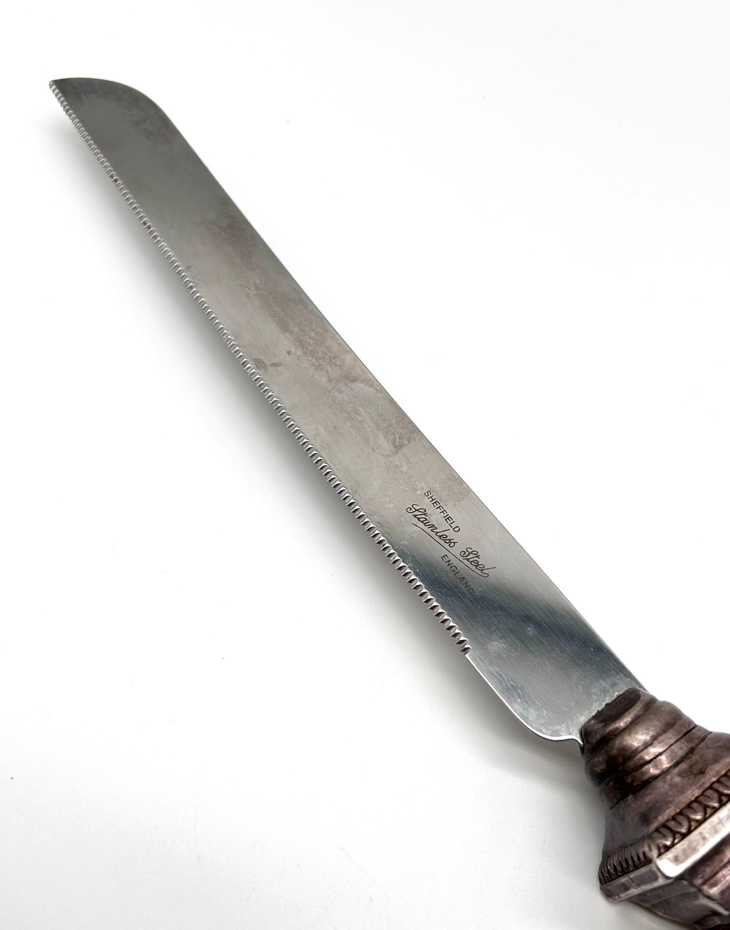 Sheffield stainless steel carving knife with marked 925 silver handle