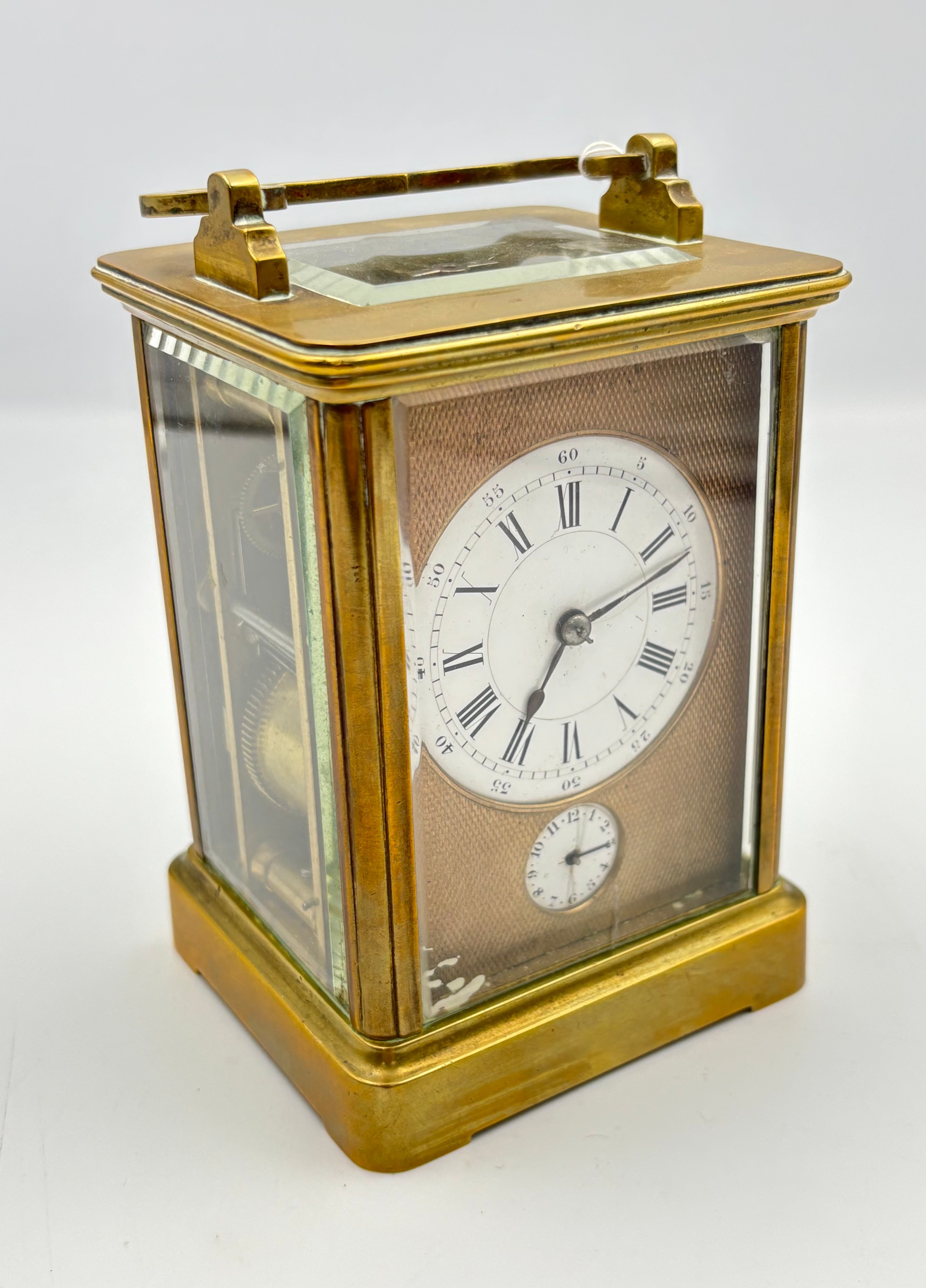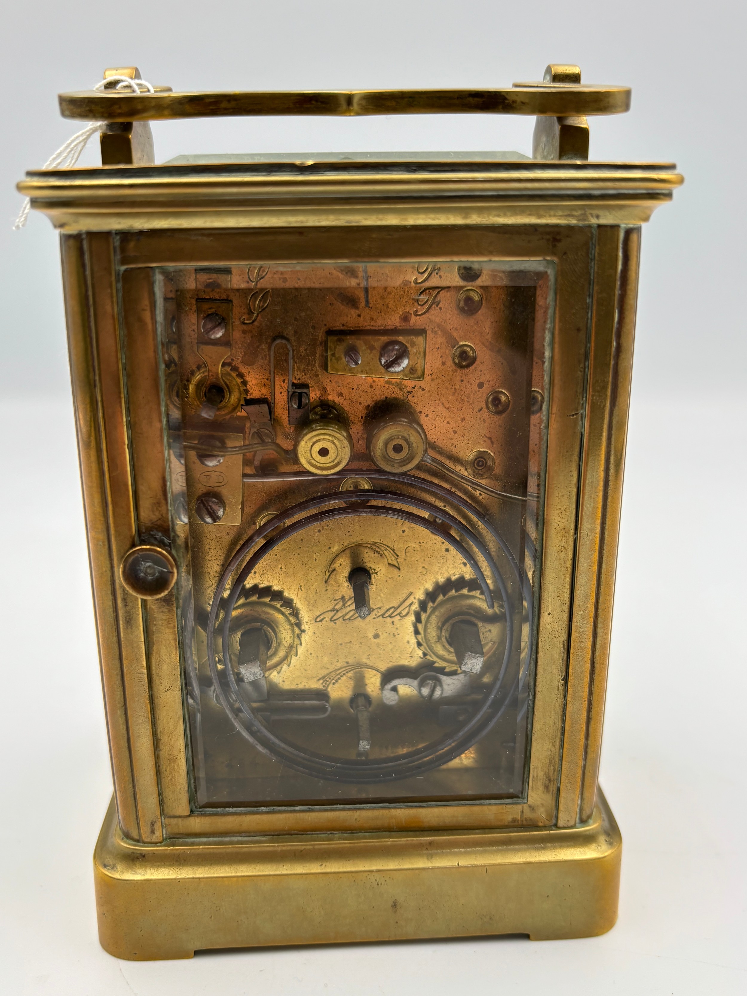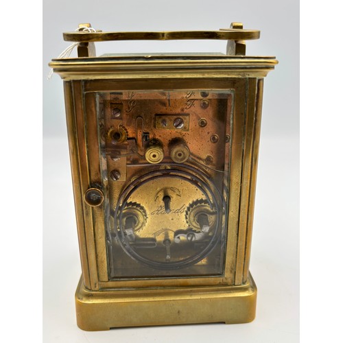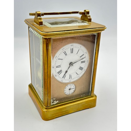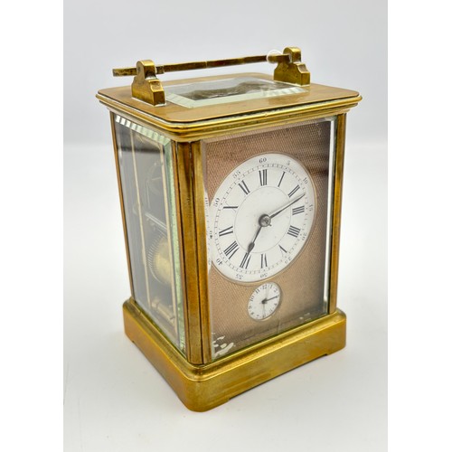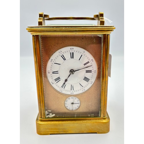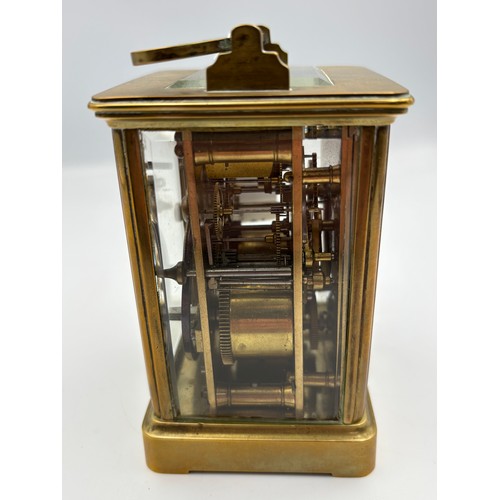 A gilt brass cased carriage alarm clock