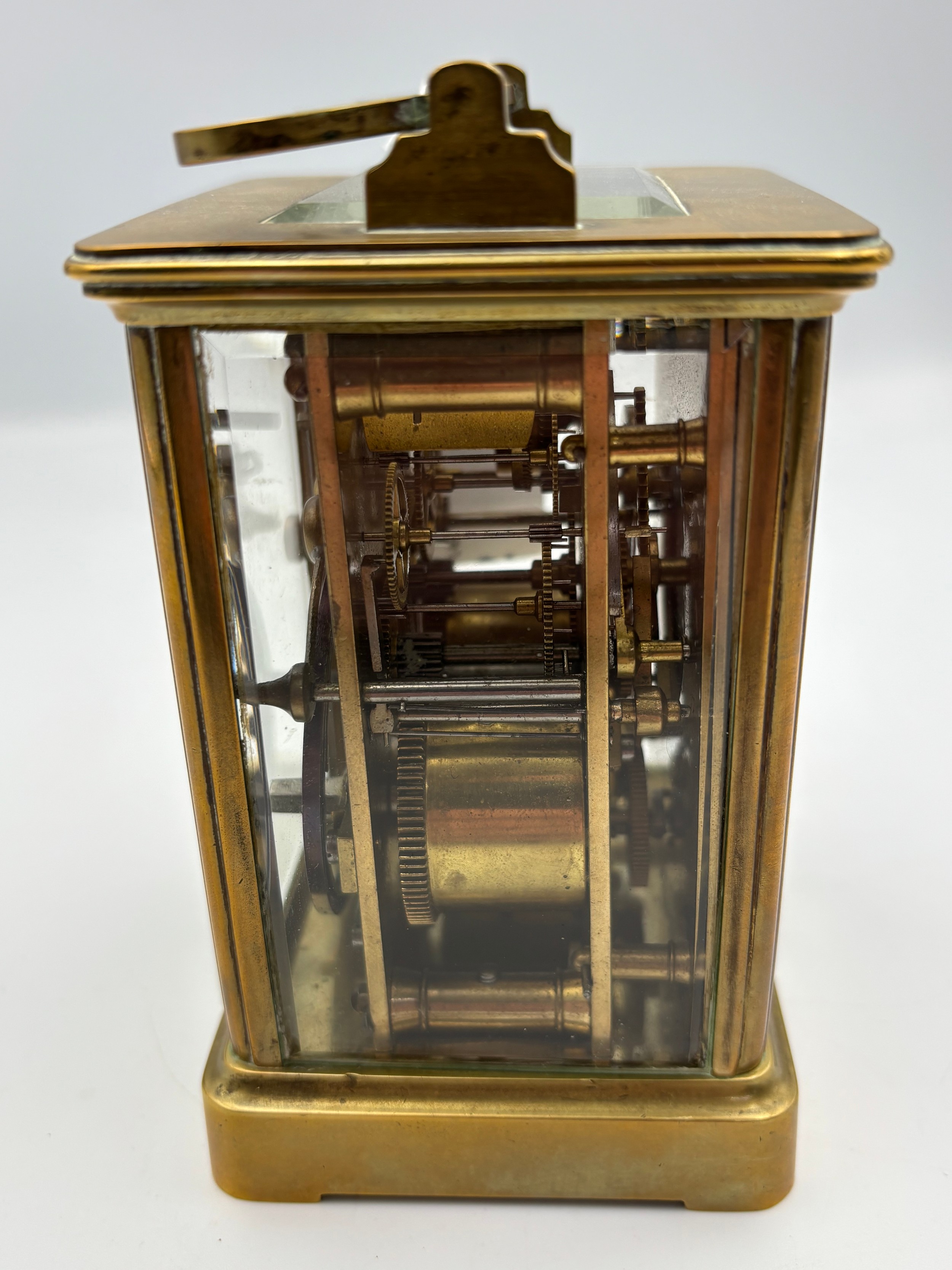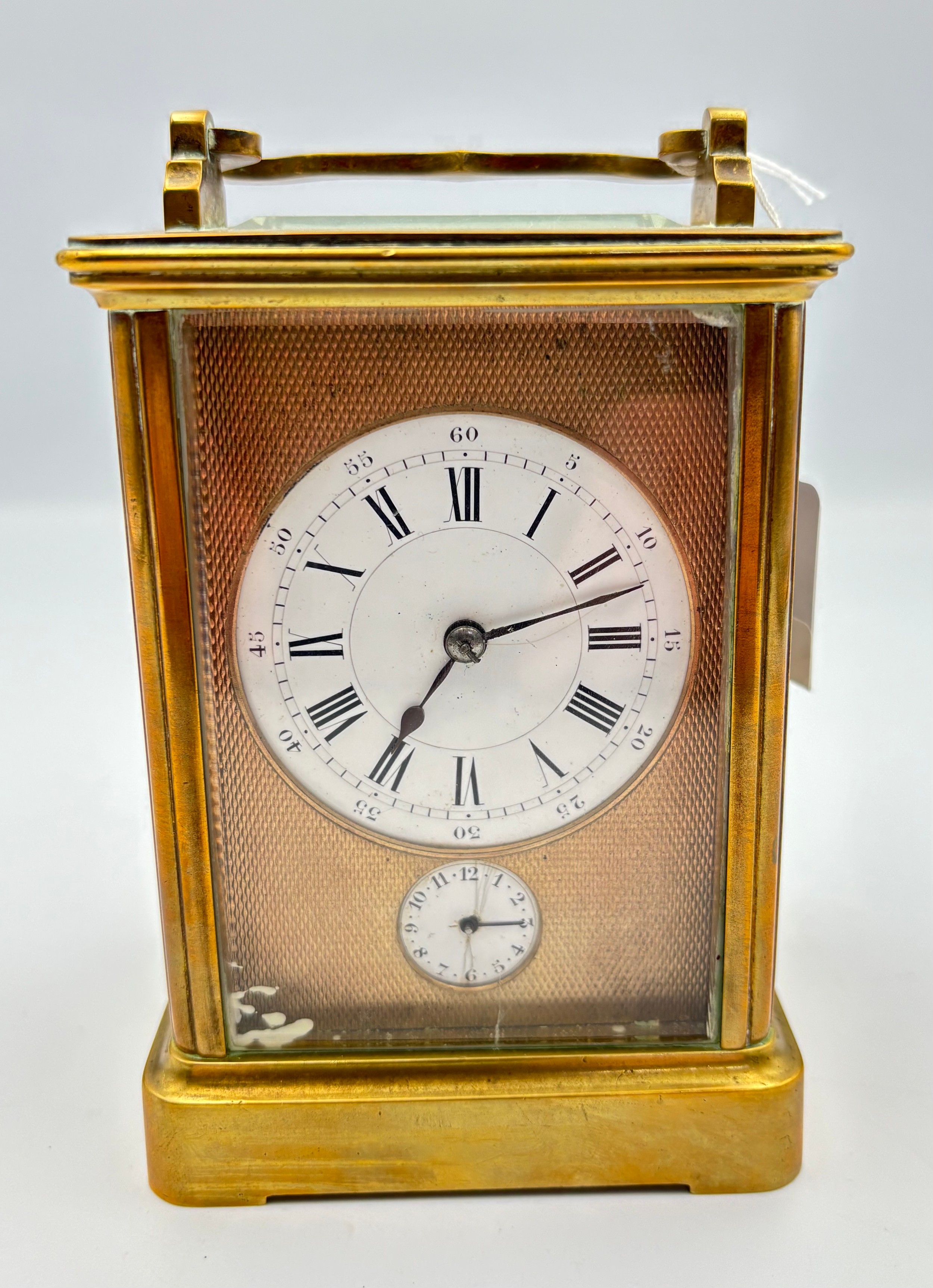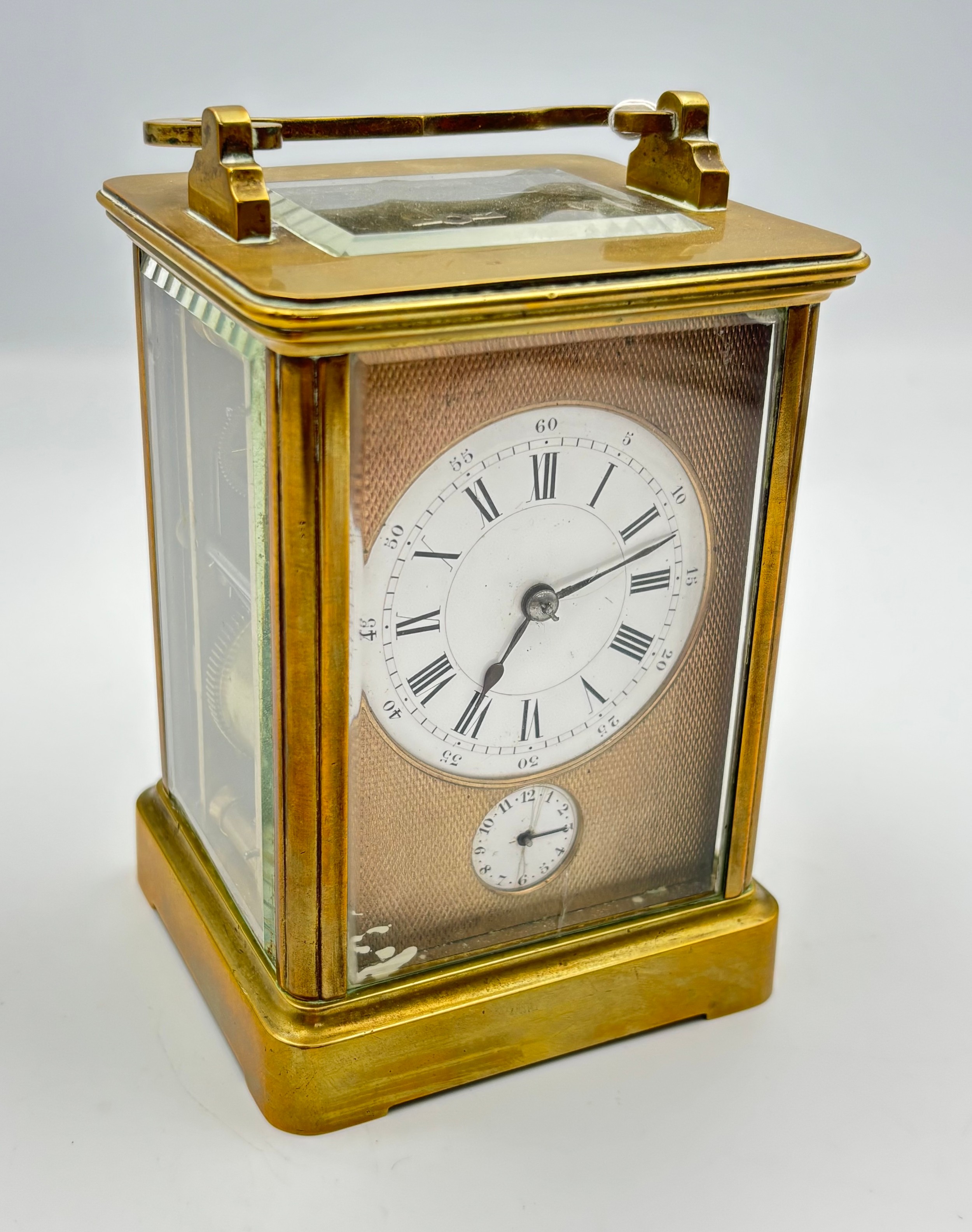 A gilt brass cased carriage alarm clock