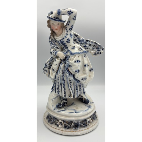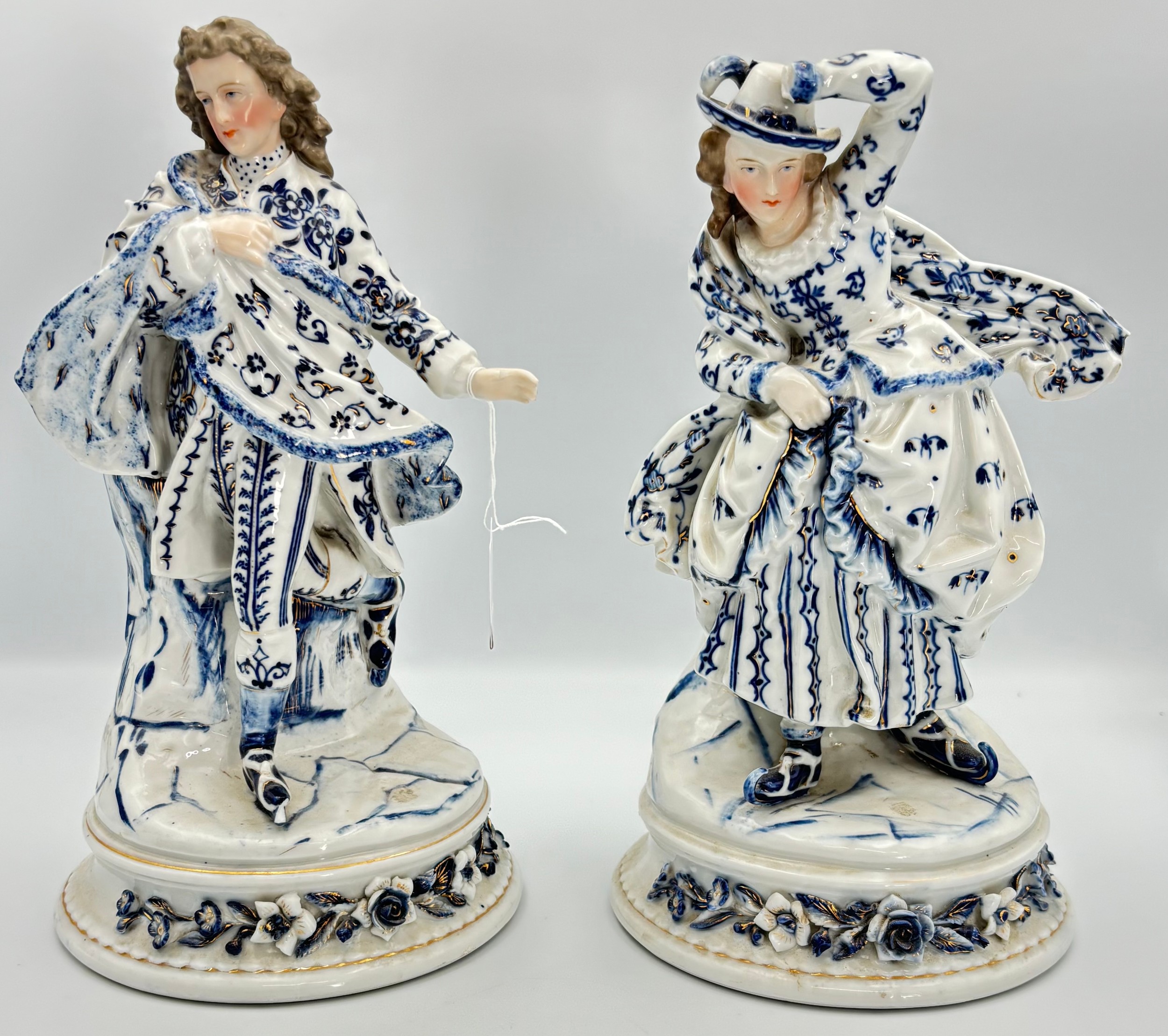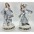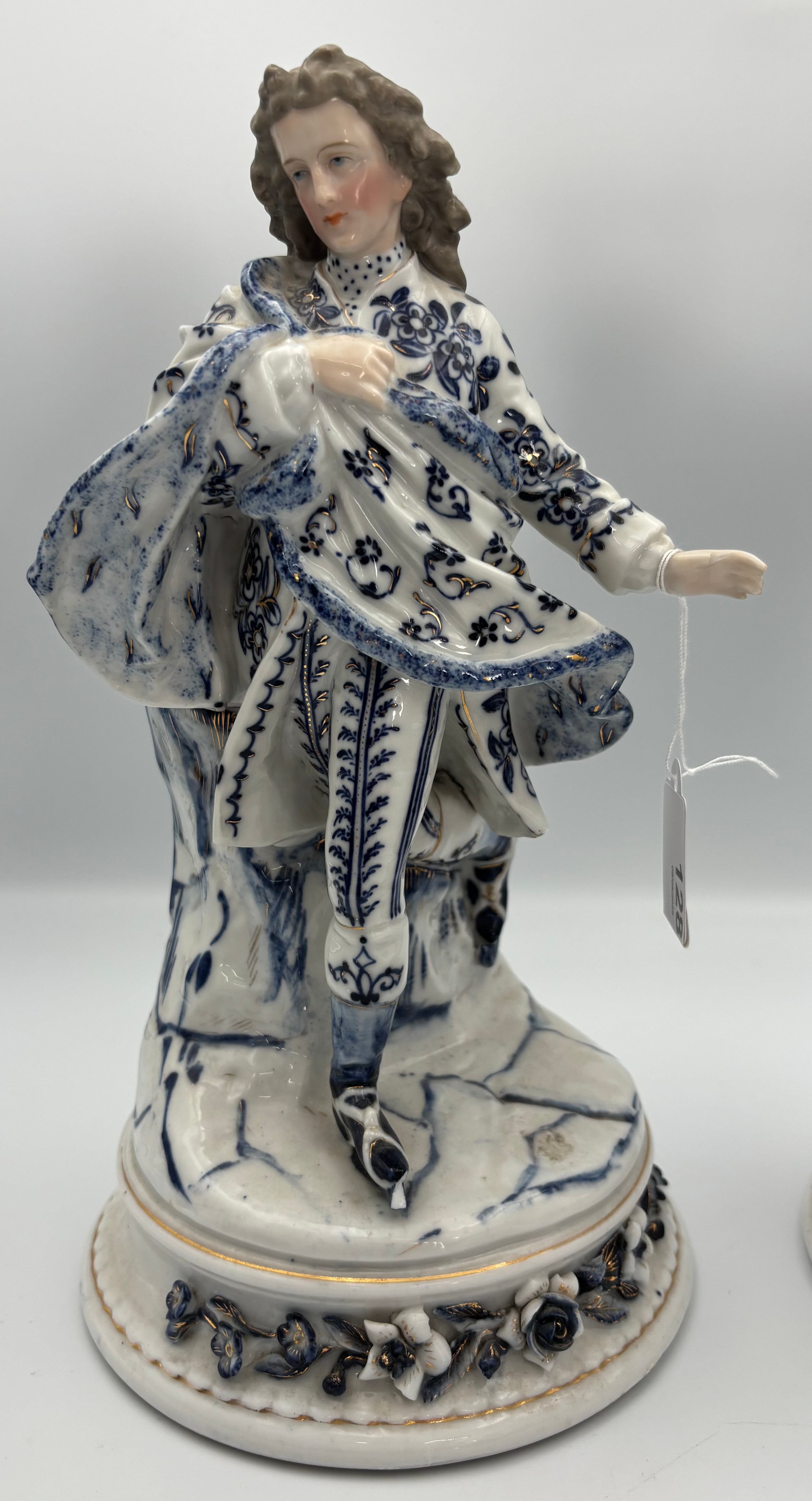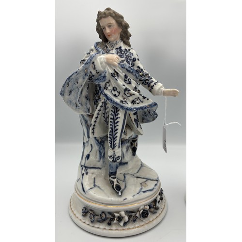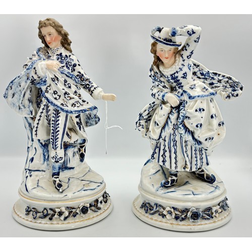 Pair of late 19th century German porcelain figures lady and gentleman, blue and gilt colours