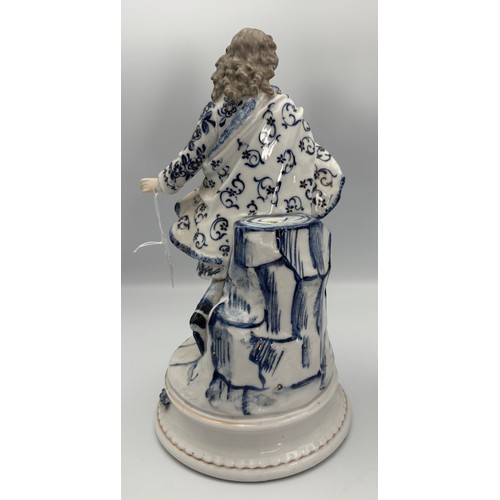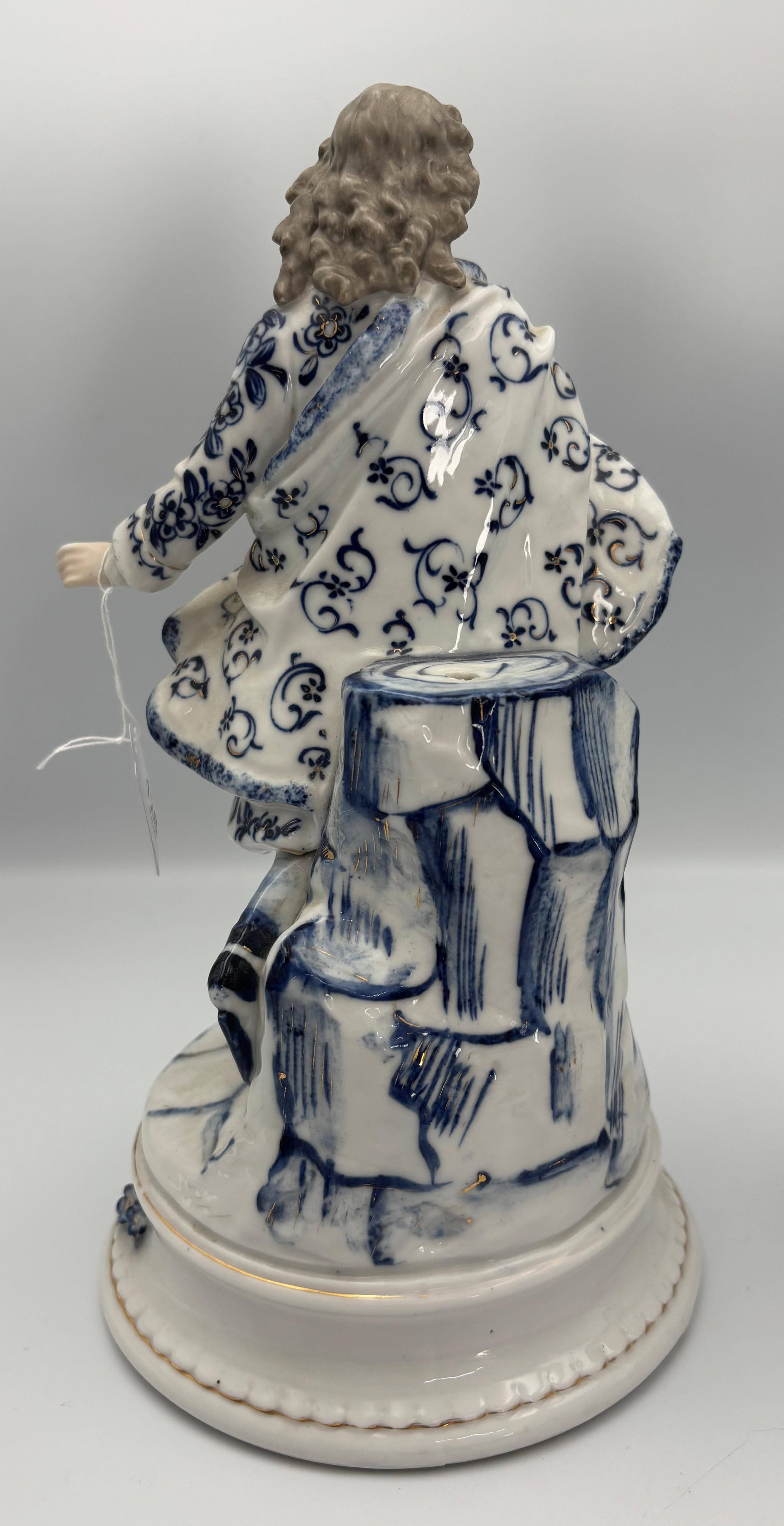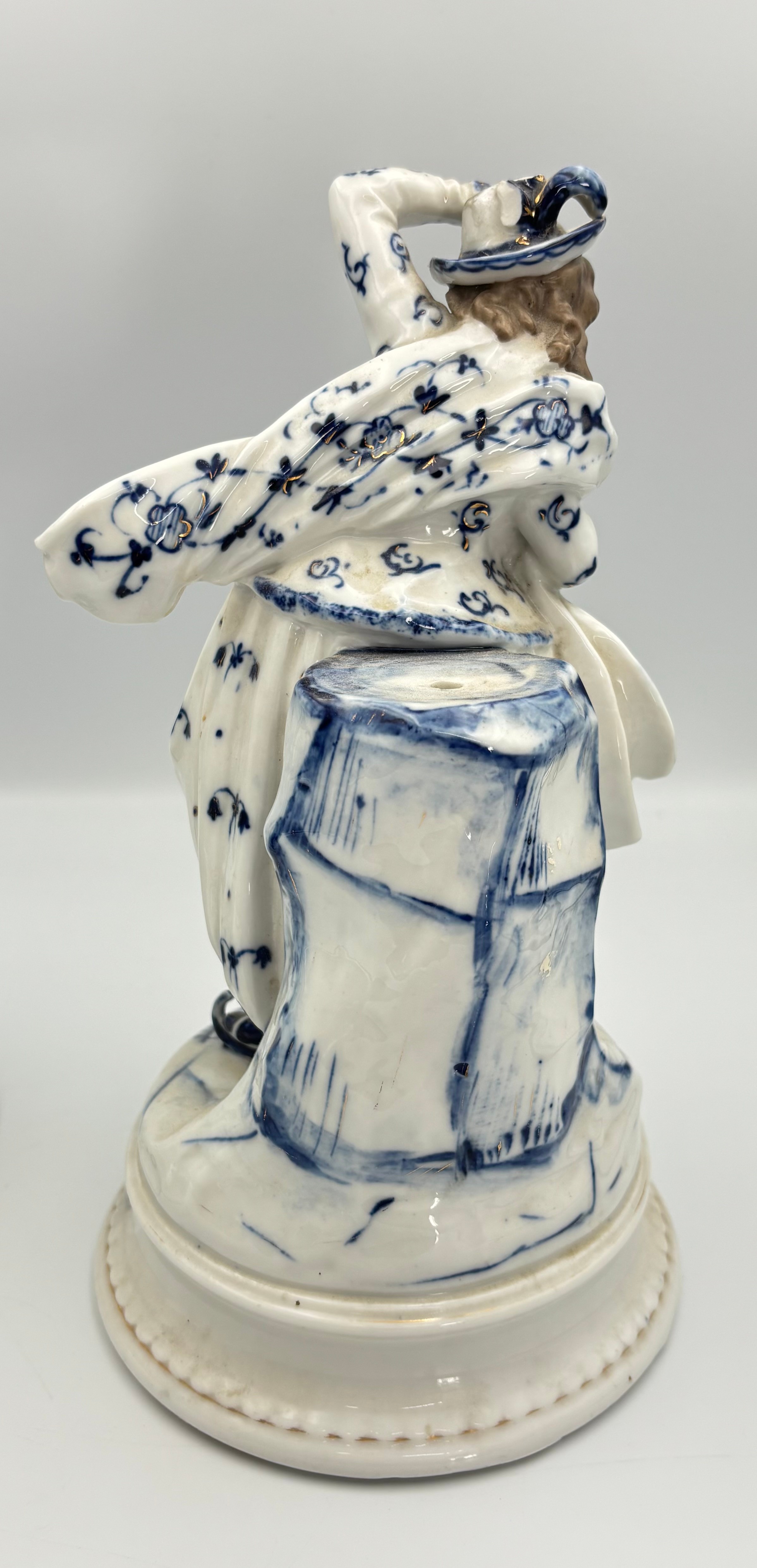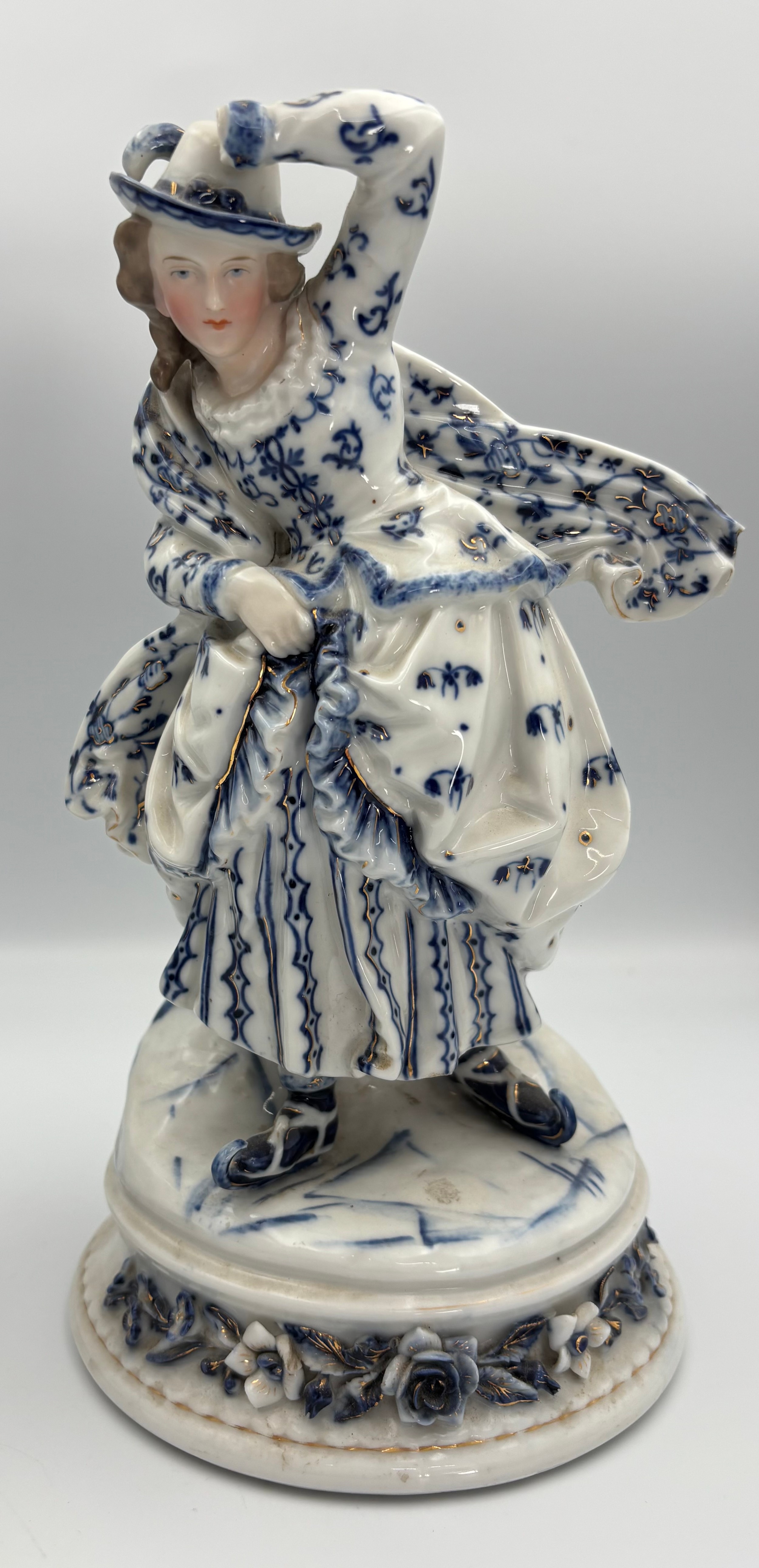 Pair of late 19th century German porcelain figures lady and gentleman, blue and gilt colours