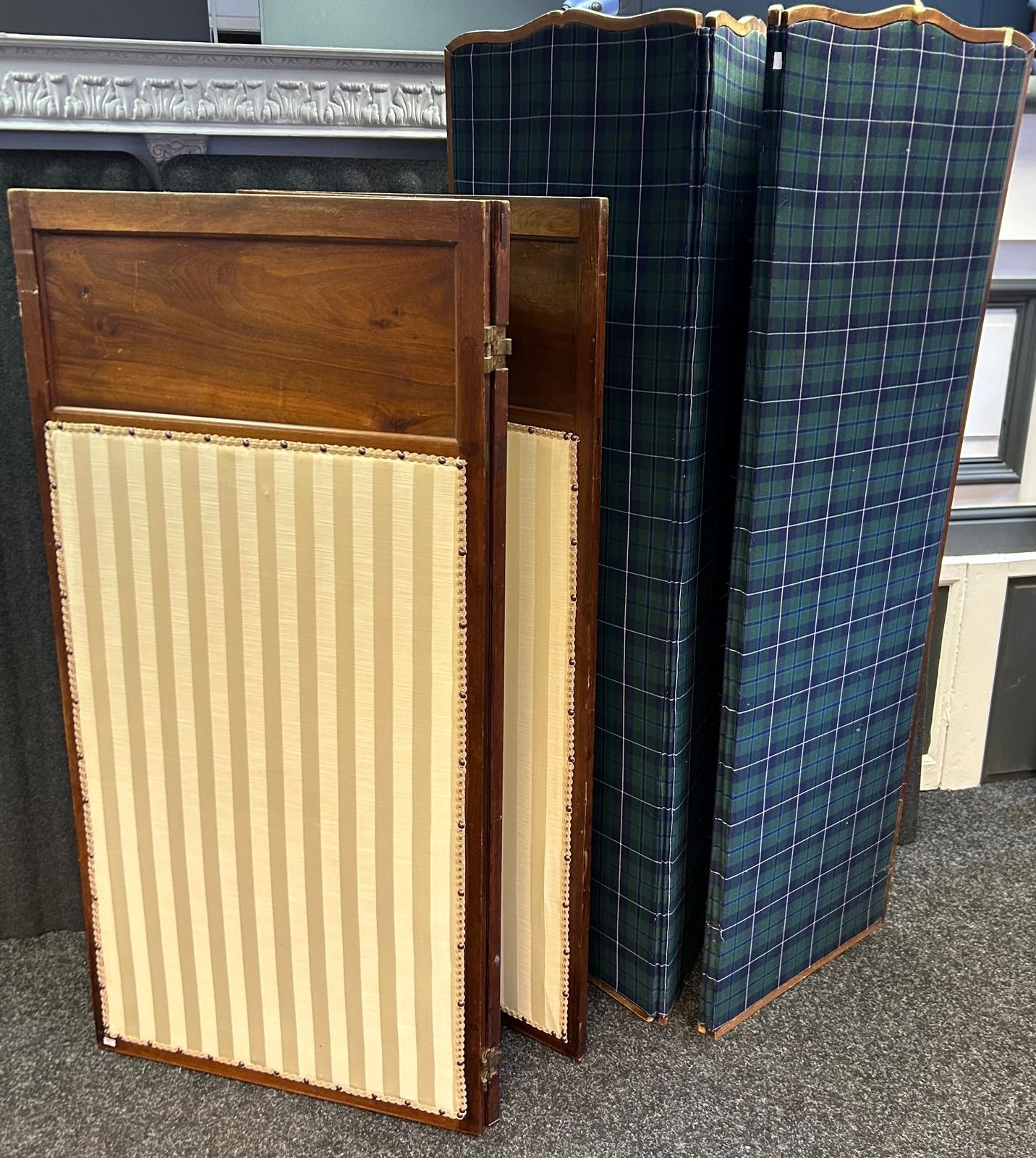 Two mahogany and material panel screens
