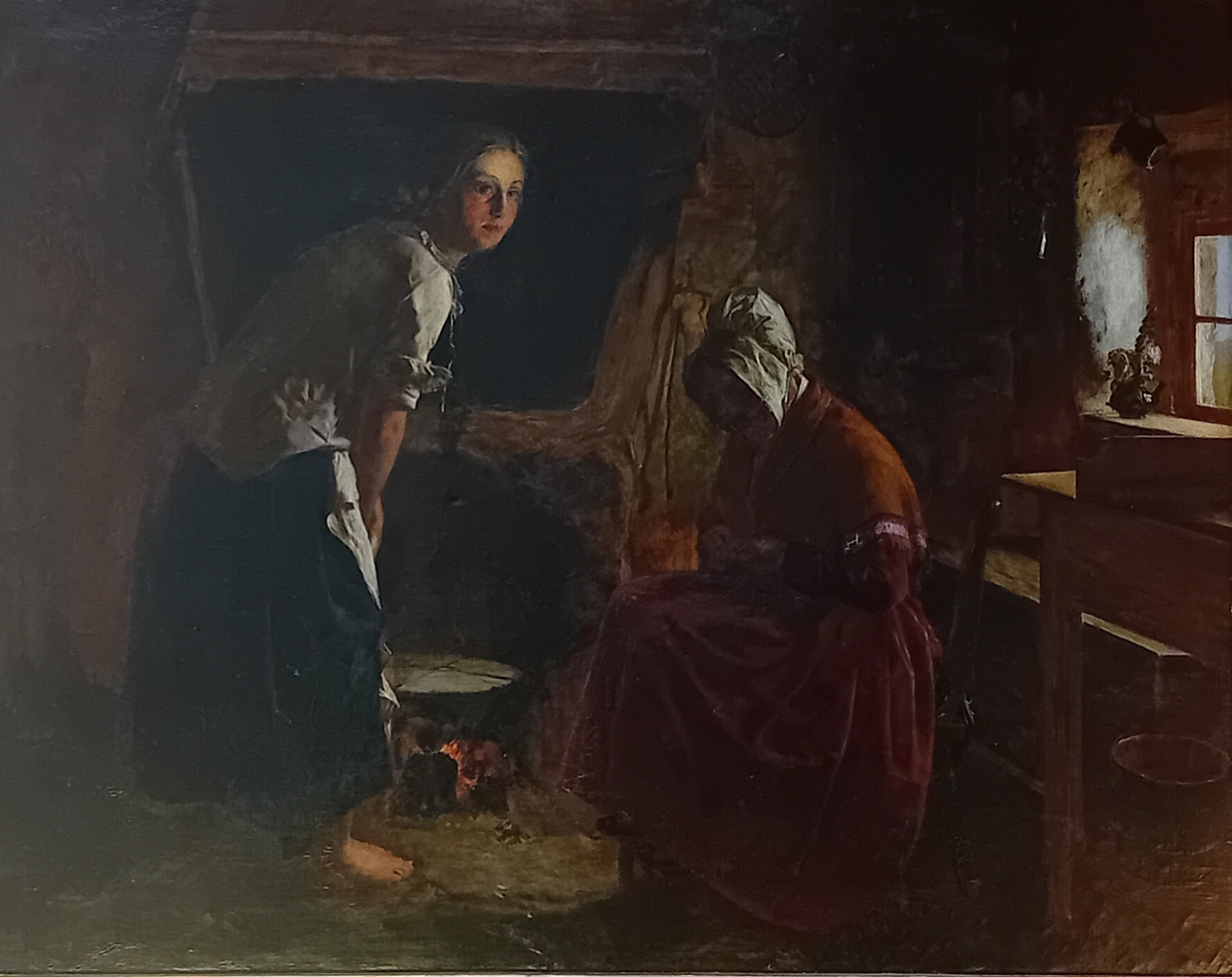 Granny and granddaughter in cottage kitchen