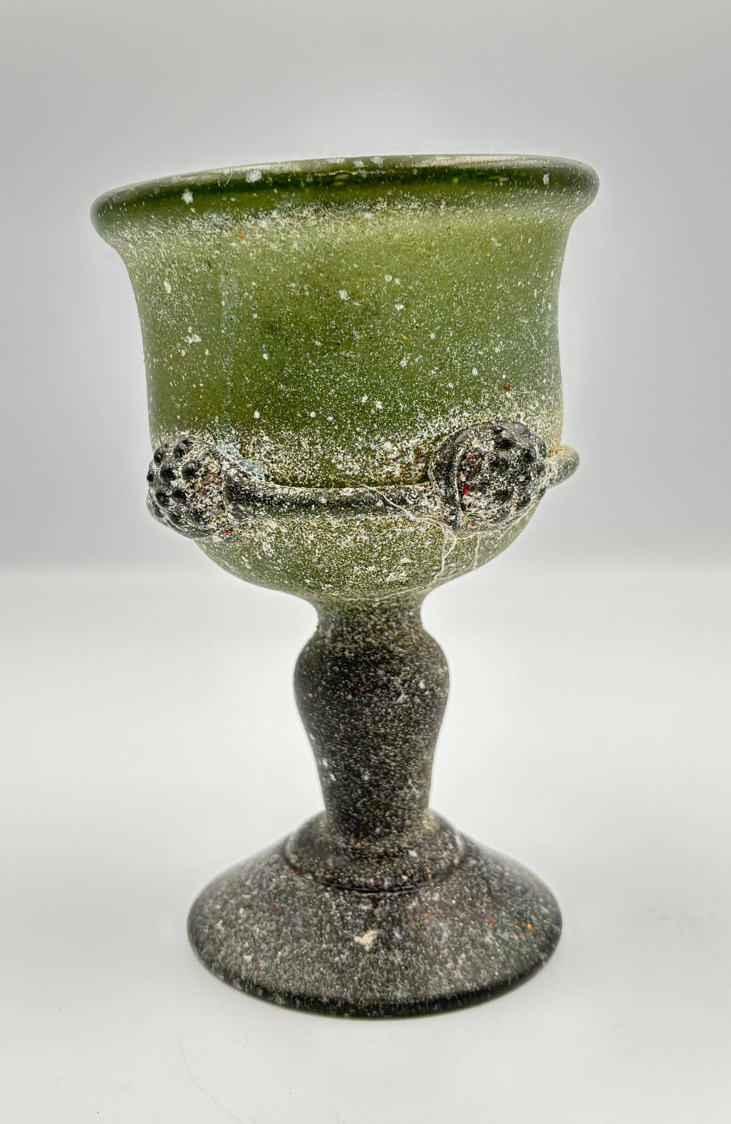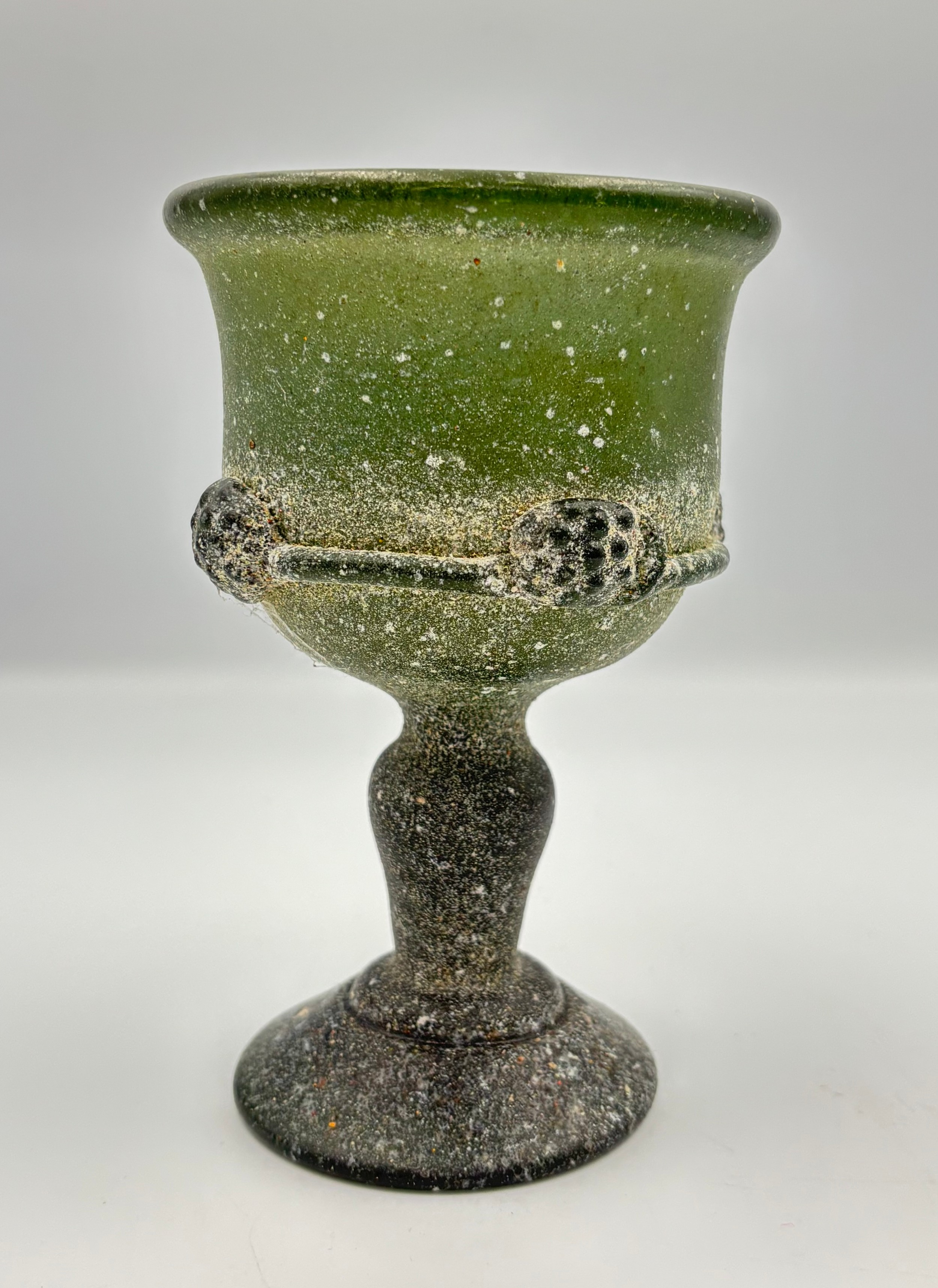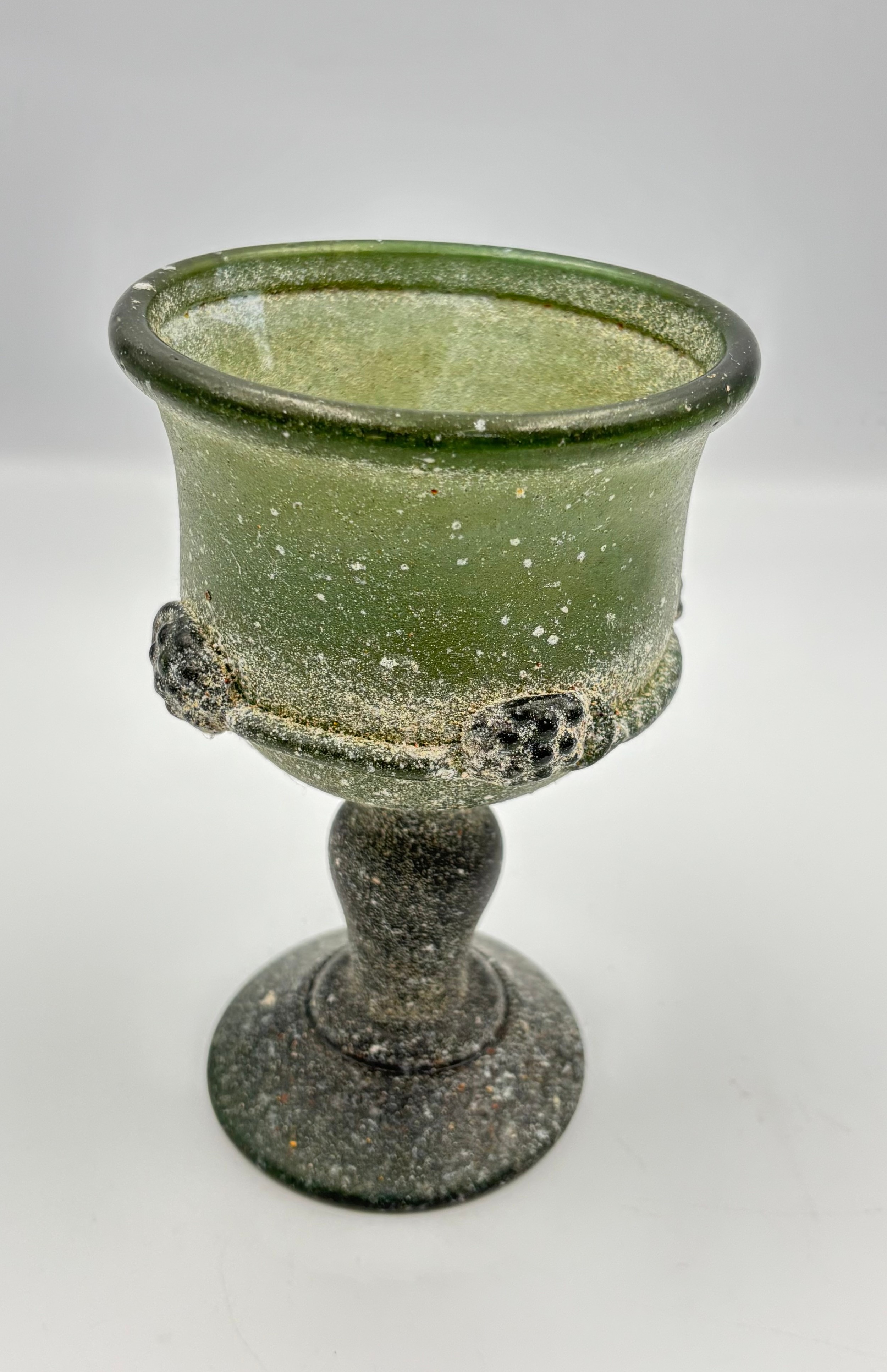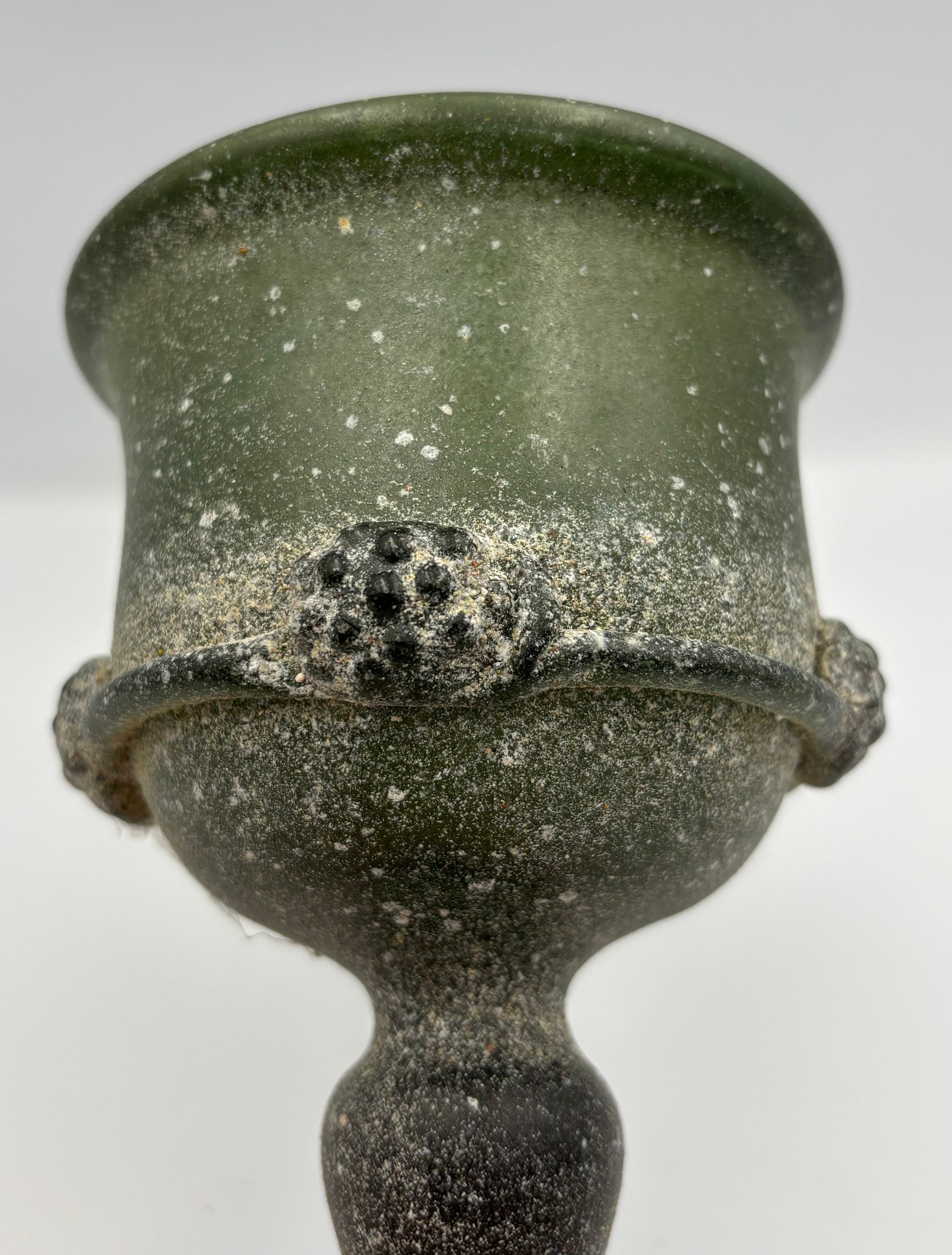17th or 18th Century hand blown green glass goblet (no breaks or chips)