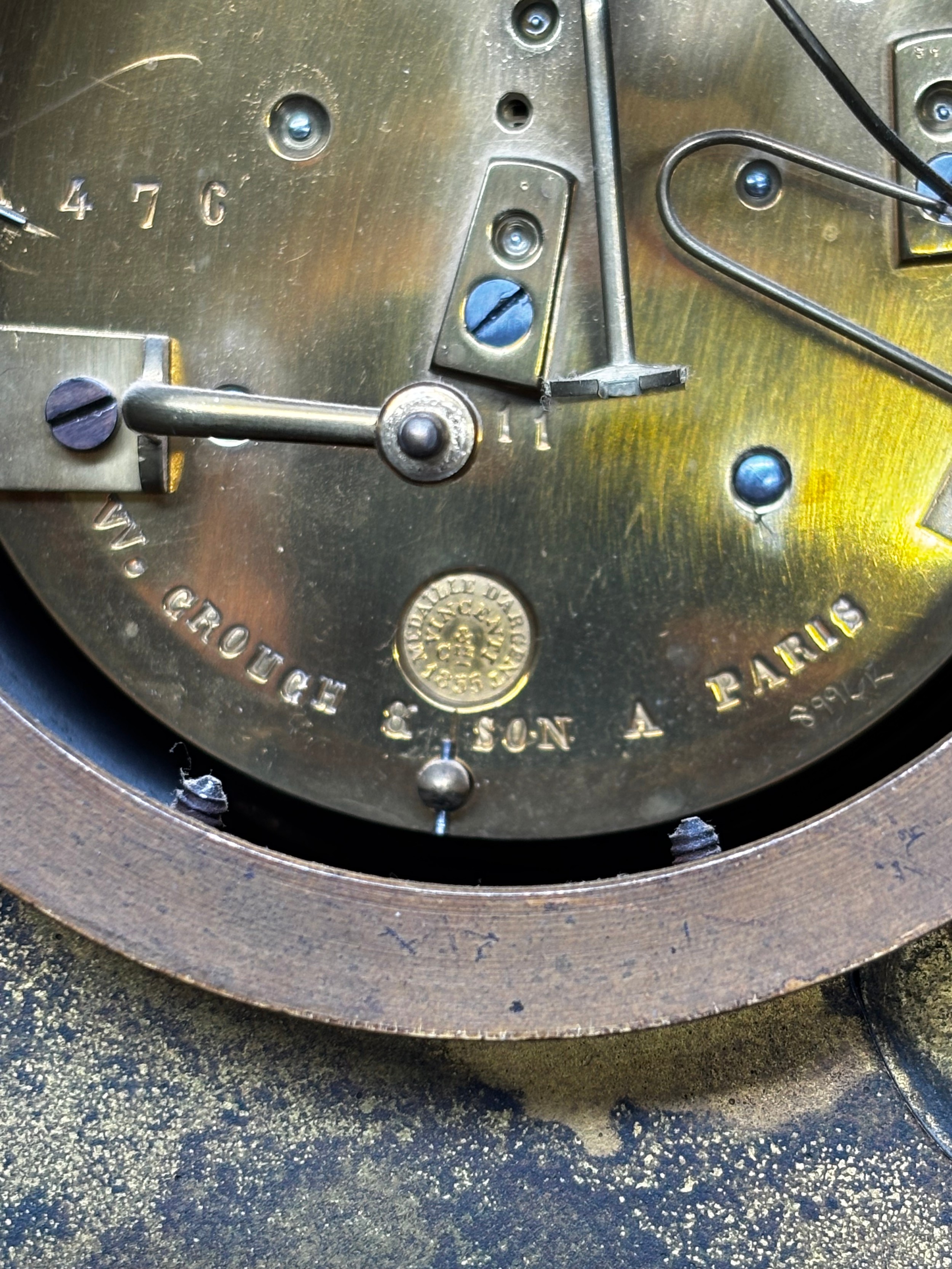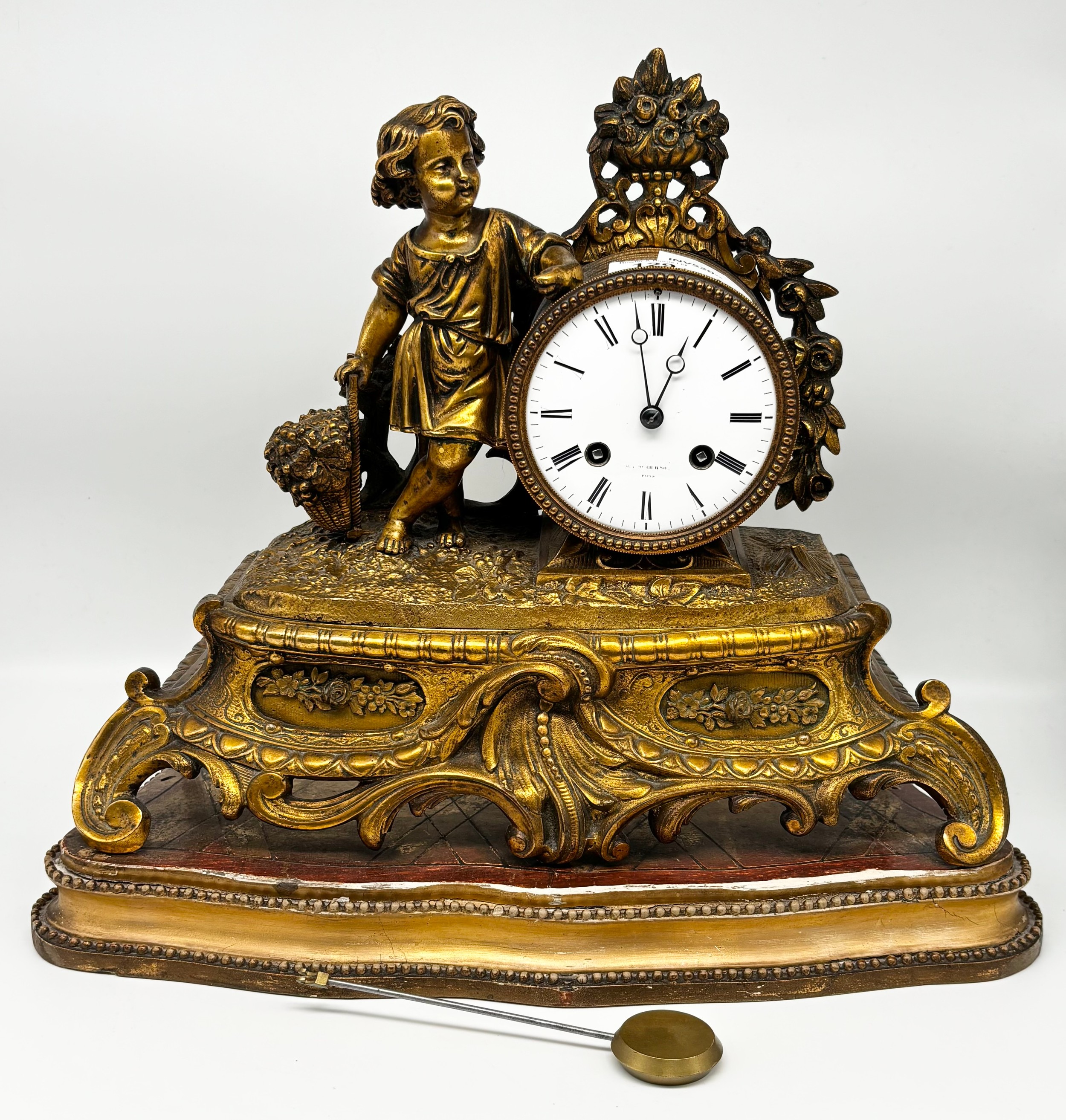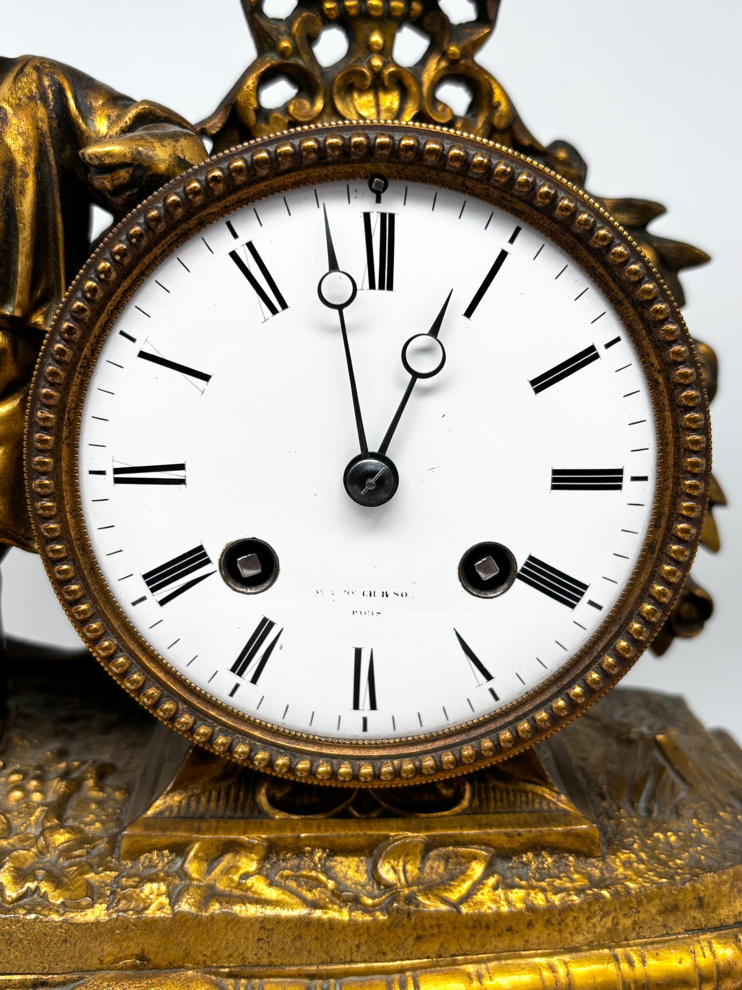 French style 19th century gilt metal cased mantle clock by W. Crouch & Son A Paris