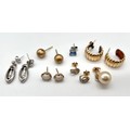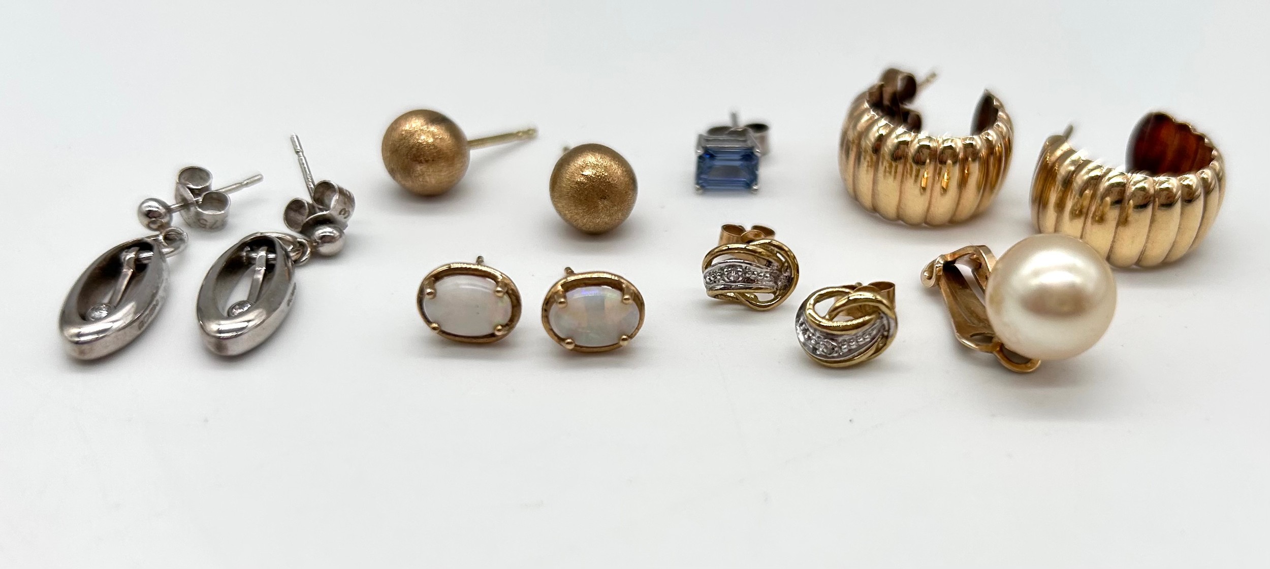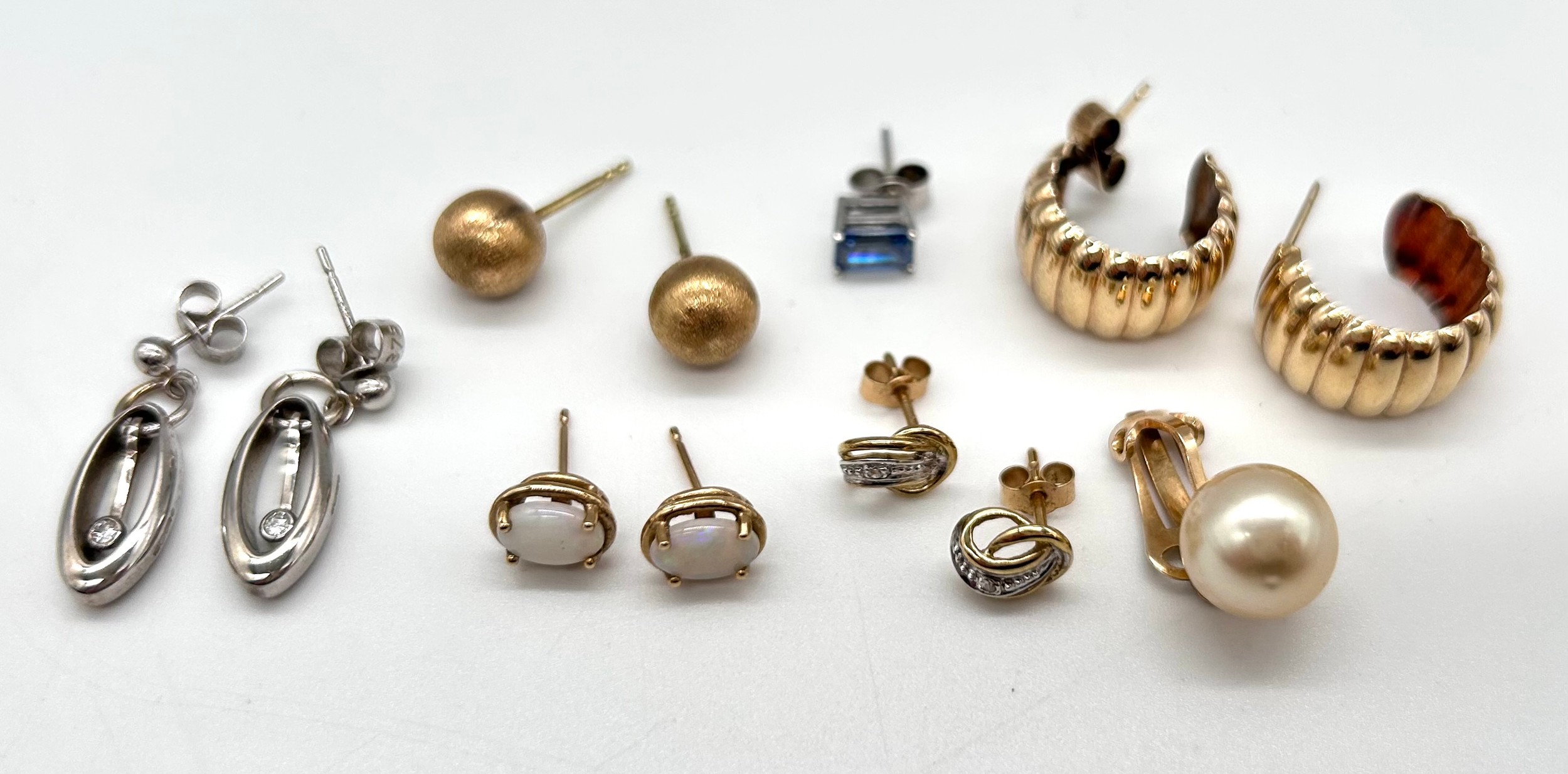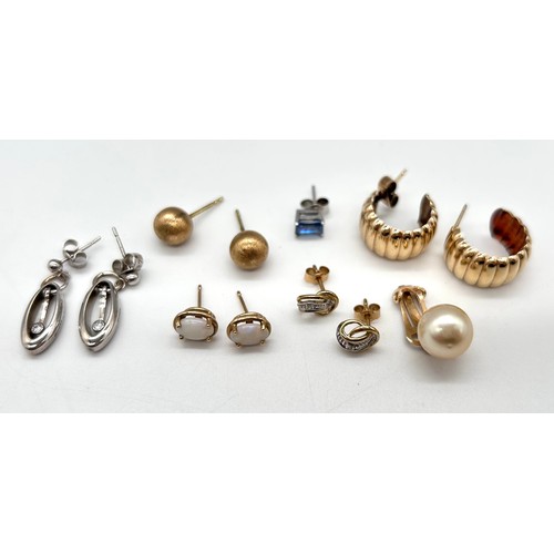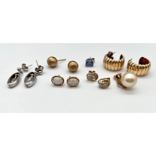 Collection of 9ct Gold ladies earrings to include 9ct opal stud earrings and a pair of 9ct and diamond earrings