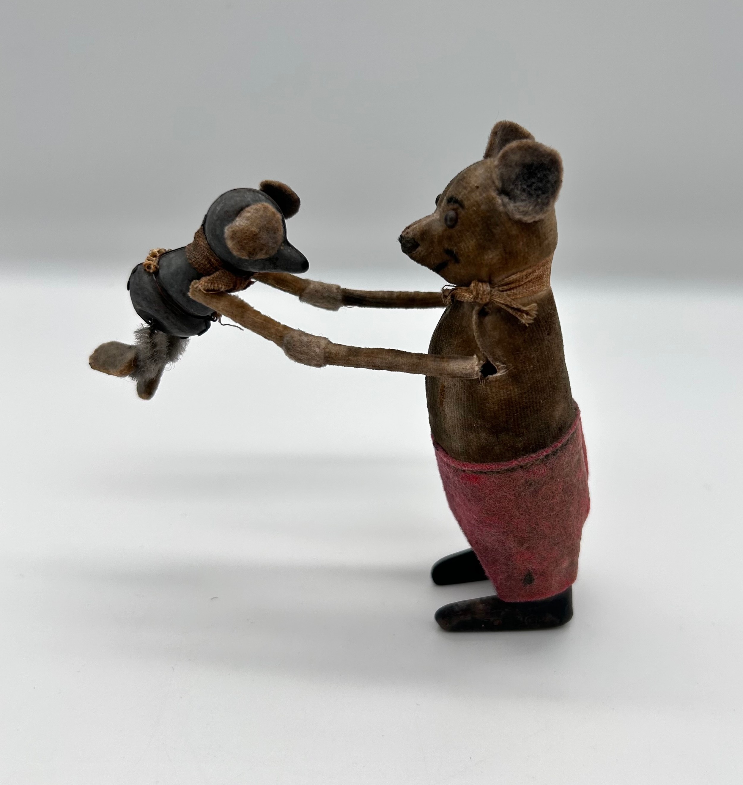 1930's vintage clockwork toy ''Dancing mouse with baby mouse'' made by German toy company Schuco.
