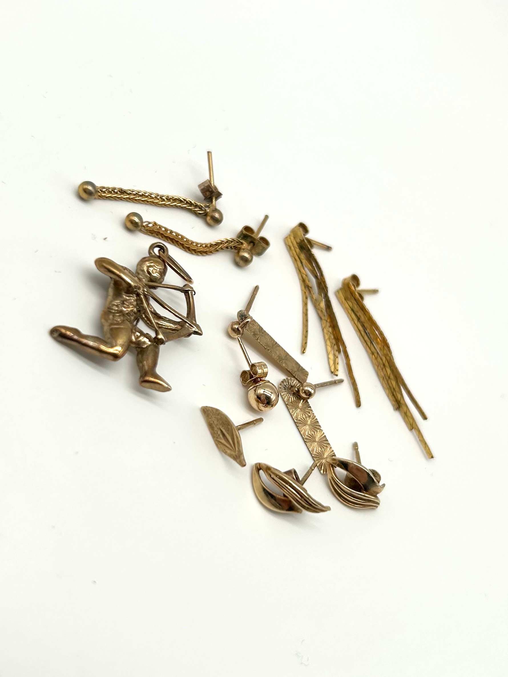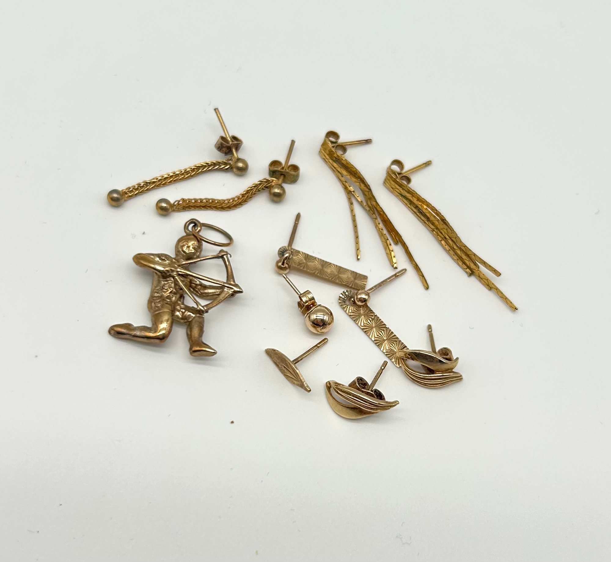 9ct Gold Sagittarius Pendant together with 9ct Gold Earrings
