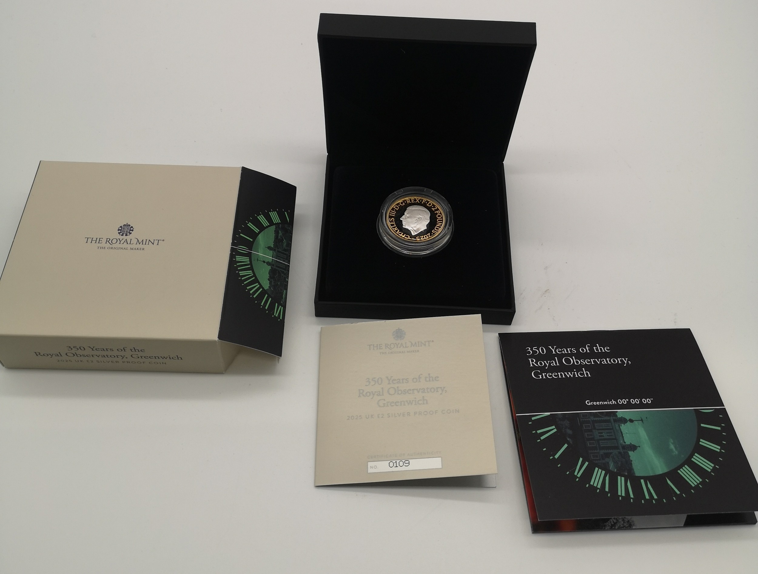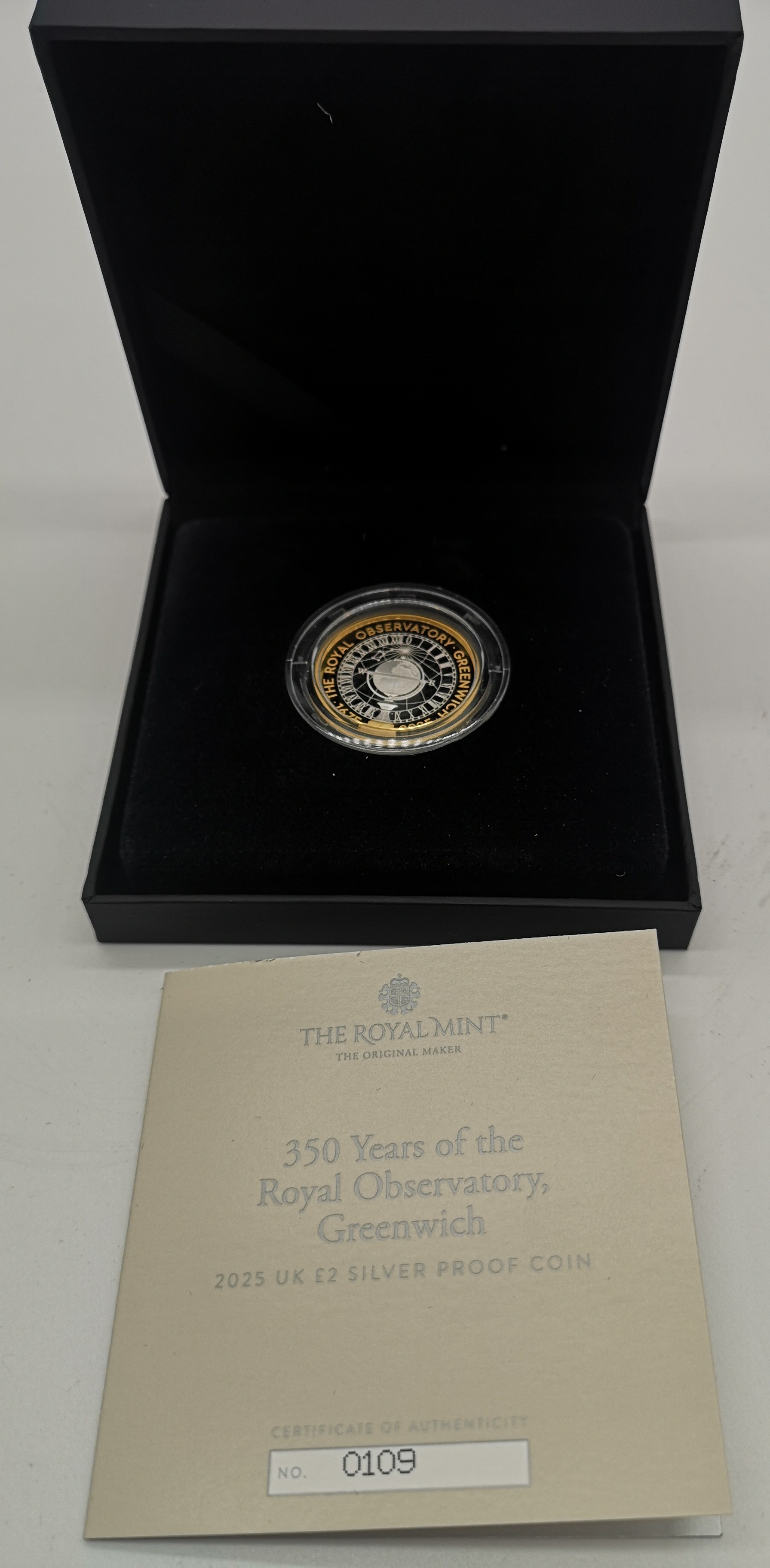 2025 UK £2 Silver Proof Coin 'Celebrating 350 Years of the Royal Observatory, Greenwich' with Certificate of Authenticity Numbered 0109