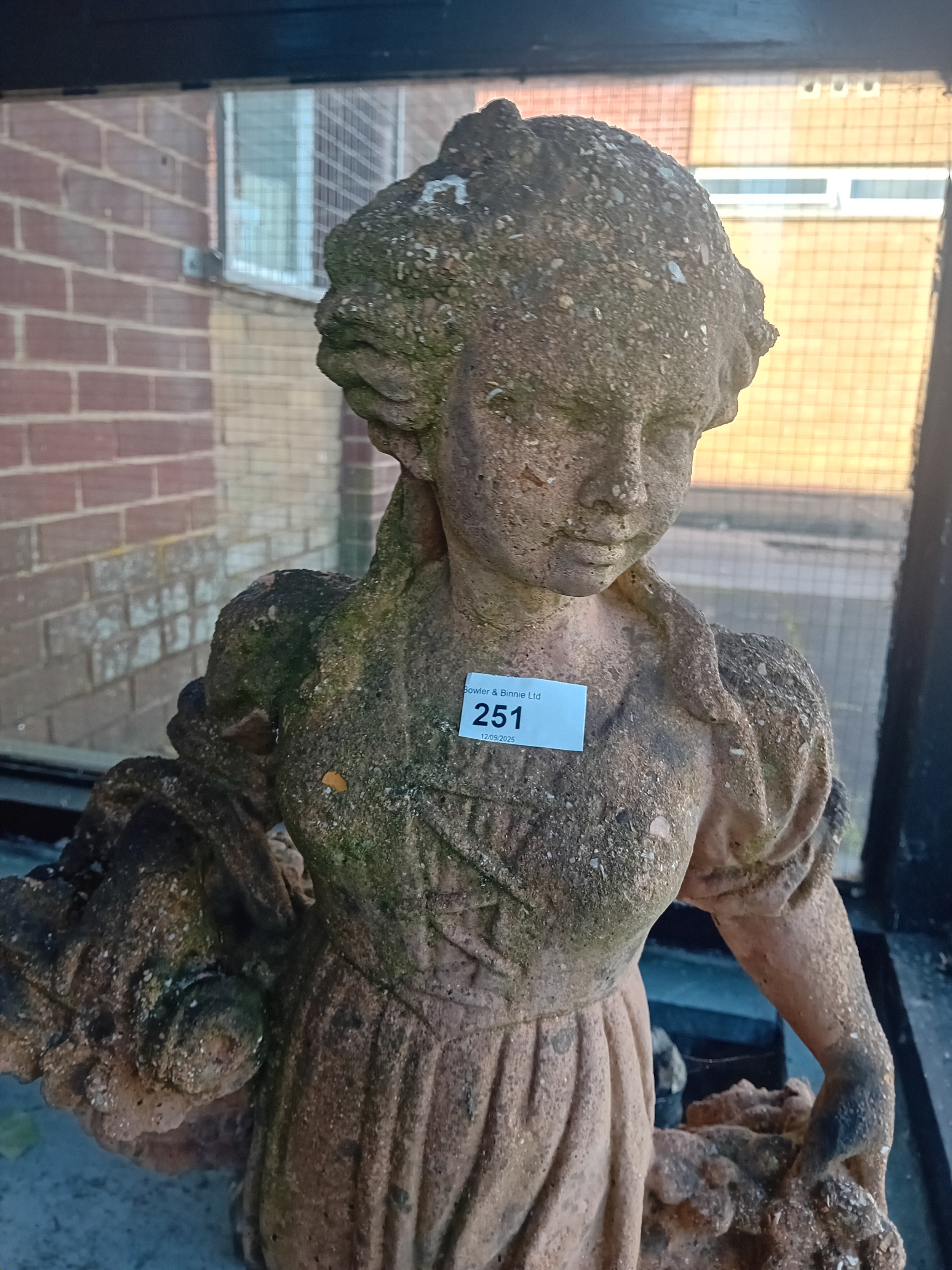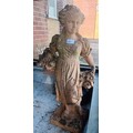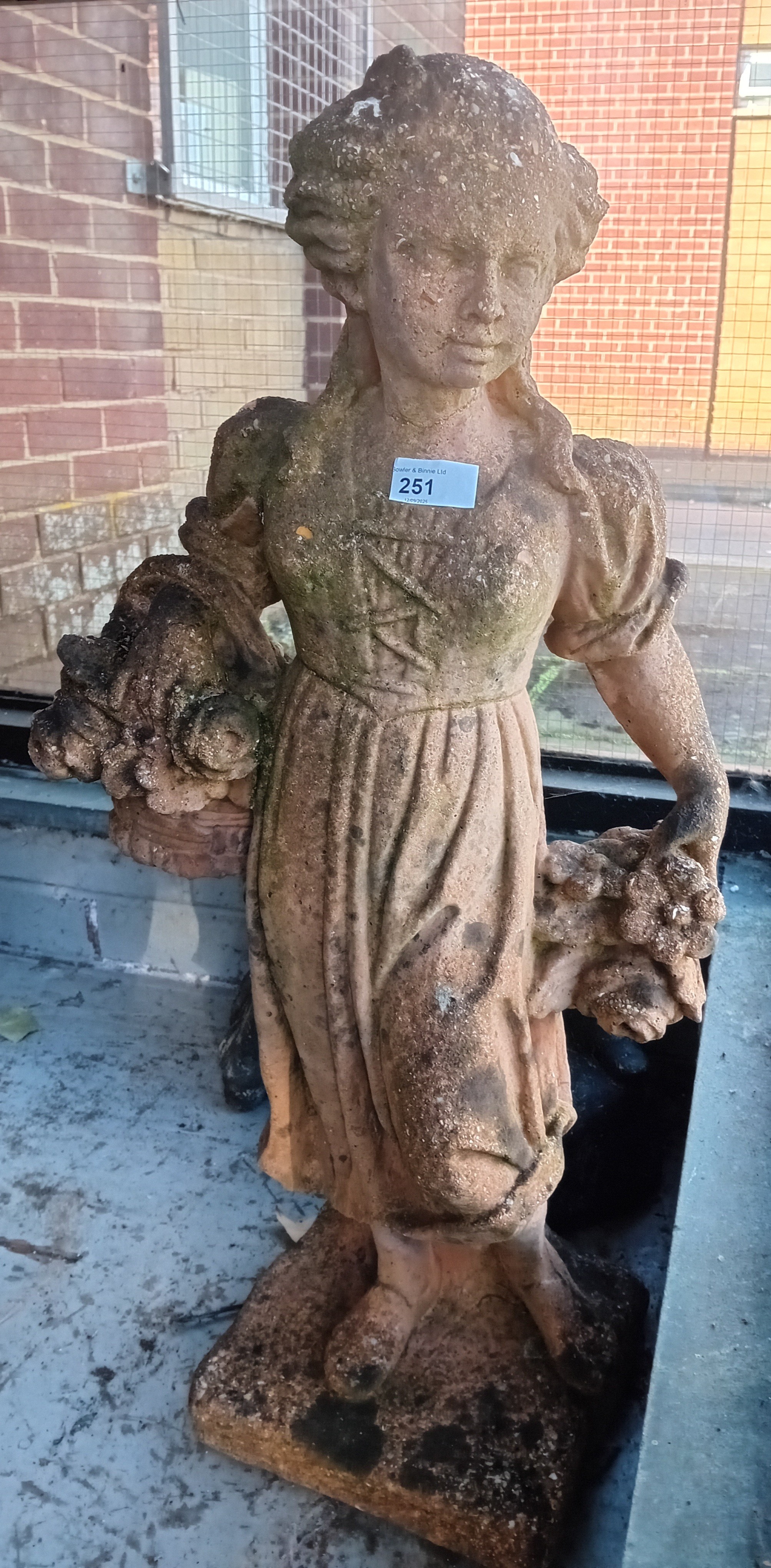 Terracotta effect Classical style garden statue of a young girl carrying a basket and holding flowers [75cm]
