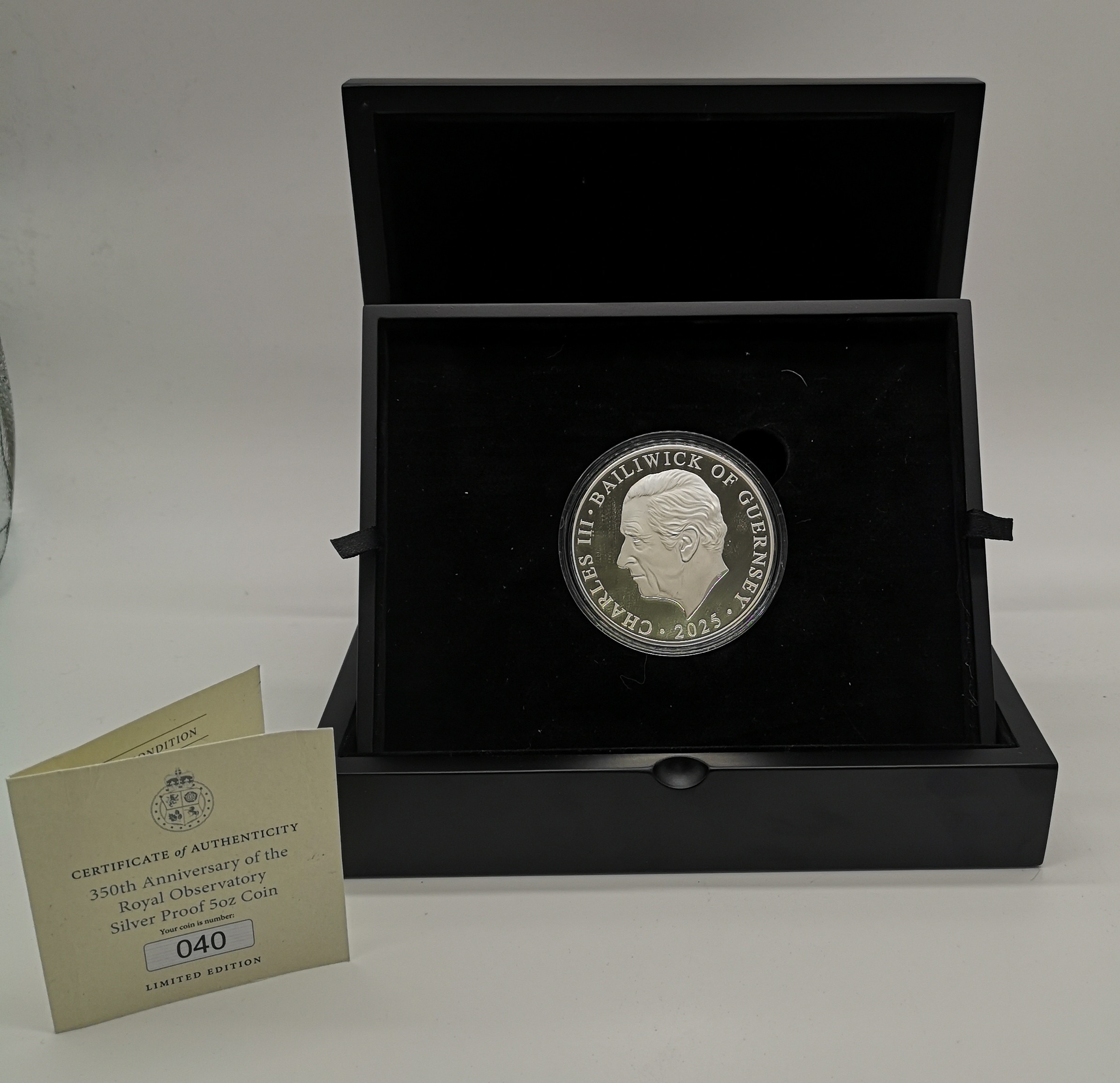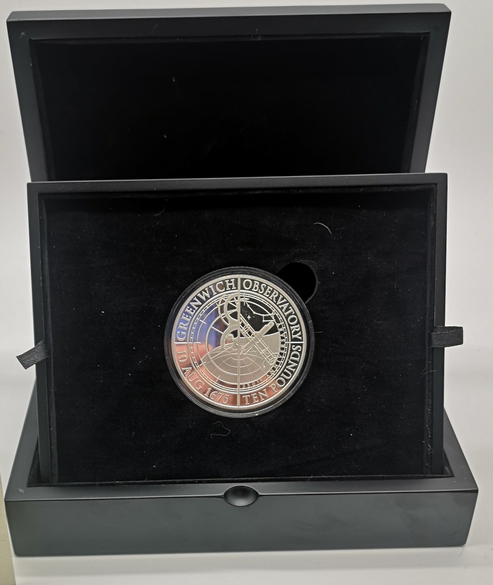 Pure Silver Ten Pound Coin, celebrating the 350th Anniversary of the Royal Observatory (Limited Edition 350, this coin being 040) weight of coin 5 oz.
