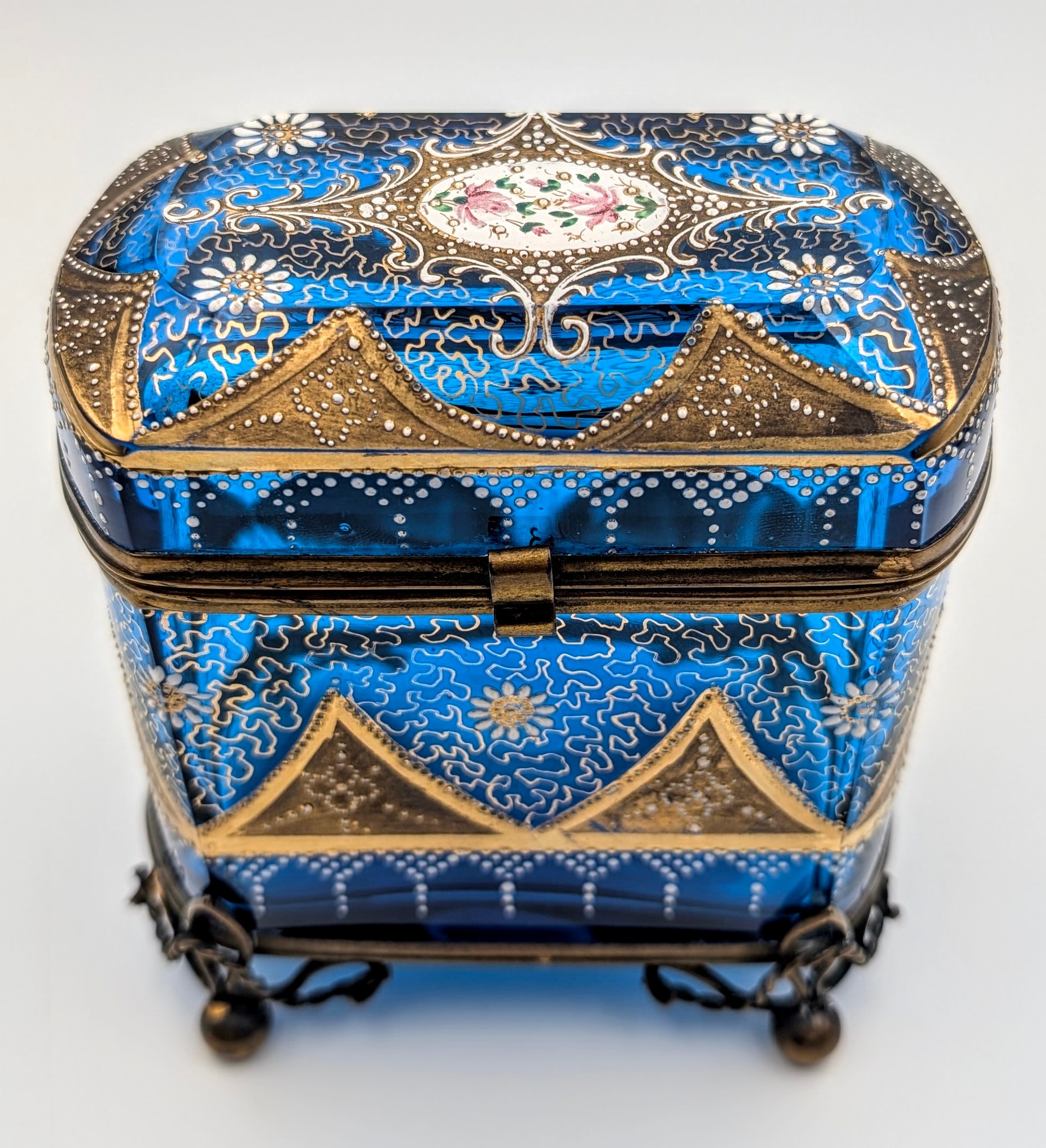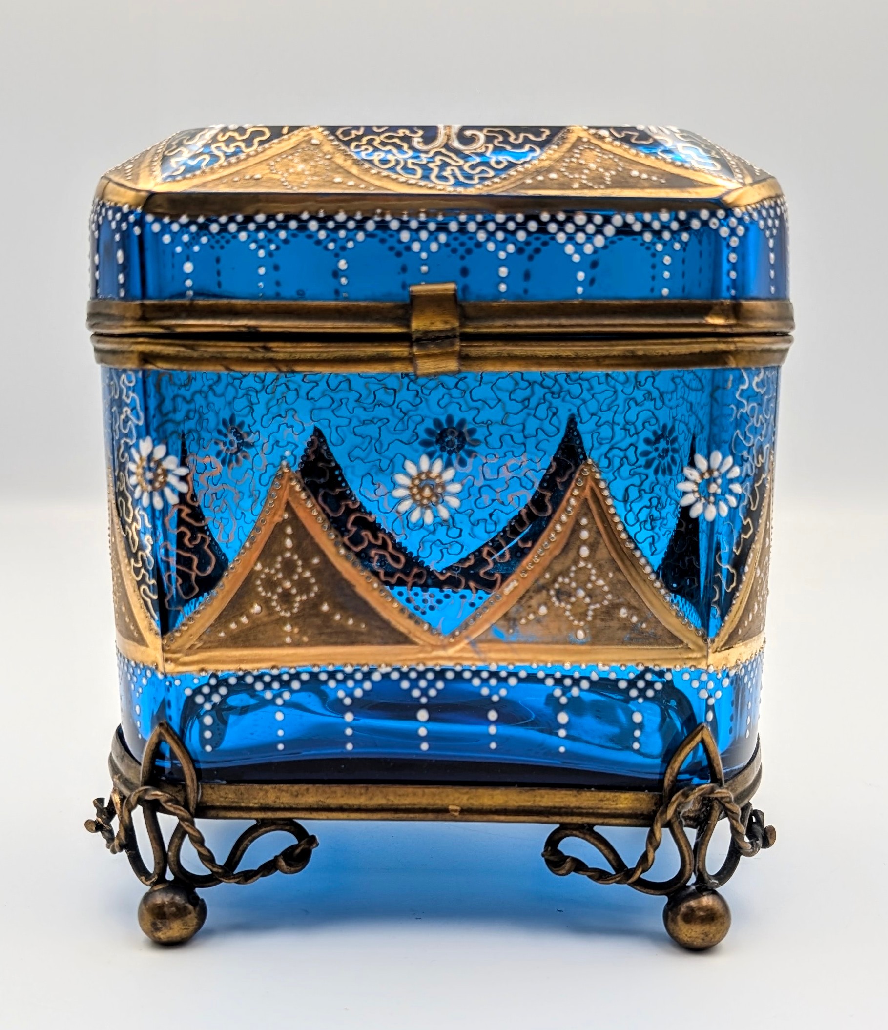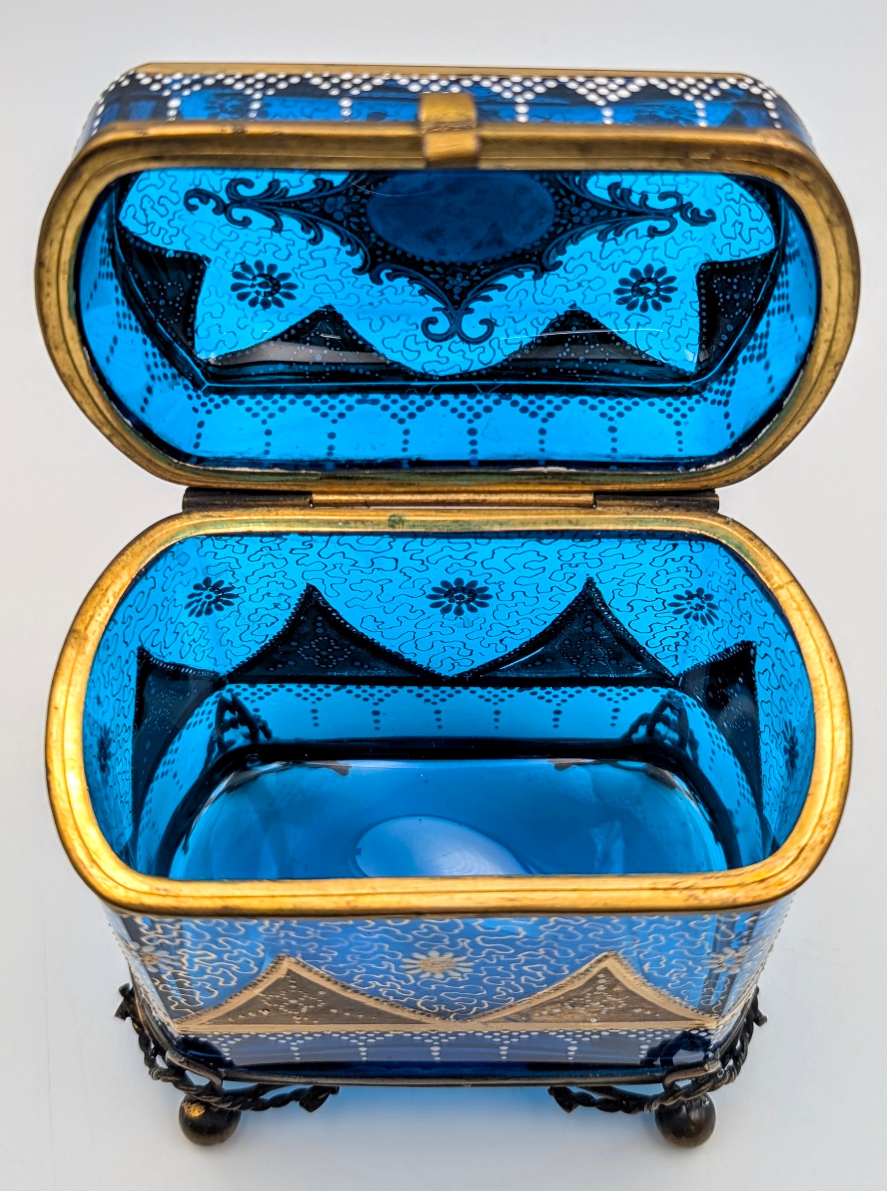 Blue casket with applied enamel and gilt decoration in the manner of Moser